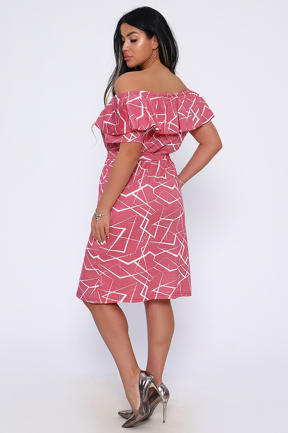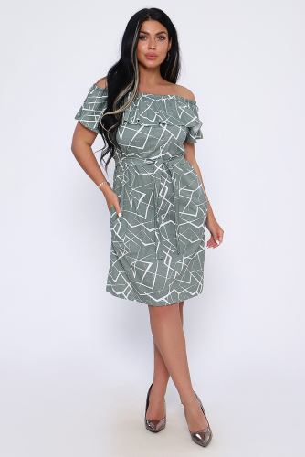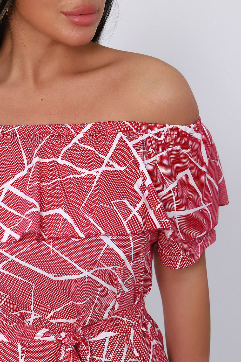 Женское платье - сарафан полуприлегающего силуэта с поясом и широкой рюшью на плечах. Выполнен в романтическом стиле из трикотажного полотна, 100% хлопок.  Горловина собрана на резинку и отделана широкой оборкой. Короткий рукав, реглан. Длина пояса в 44 размере 155 см, в 62 размере 180 см. Широкий размерный ряд с 44 до 62 размера. Яркие весенне-летние расцветки с принтом по ткани в виде клетки. Карманы в боковом шве добавляют дополнительный комфорт при носке. Платье можно носить, как со спущенным с плеч верхом, так и с поднятым, либо на одно плечо. Прекрасно подходит беременным, так как пояс не фиксируется на изделии и может приталить платье на любом уровне. В этом нарядном и удобном платье, Вы будете себя чувствовать комфортно в любой обстановке: на прогулке, дома, в отпуске, на пляже, на даче и на любом празднике. Материал: кулирка; Состав: 100% хлопок.
