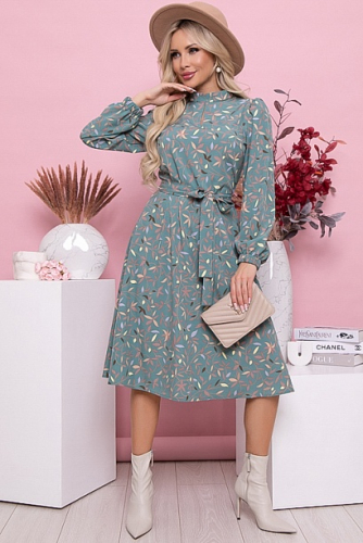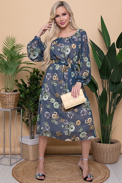 Платье свободного А-образного силуэта из шифона на трикотажном подкладе.Пояс в комплекте.