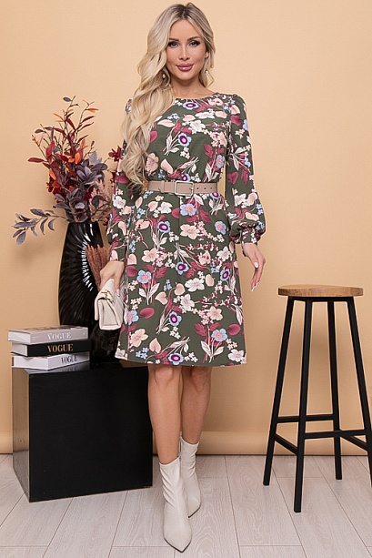 Платье А-образного силуэта из текстильного полотна.Ремень в комплект не входит.