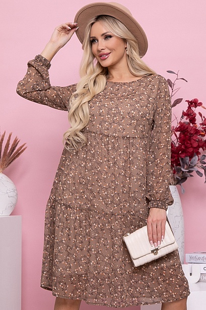 Платье свободного силуэта из шифона с ярусами на трикотажном подкладе.