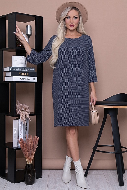 Платье из костюмной ткани в мелкий горошек свободного  прямого силуэта.