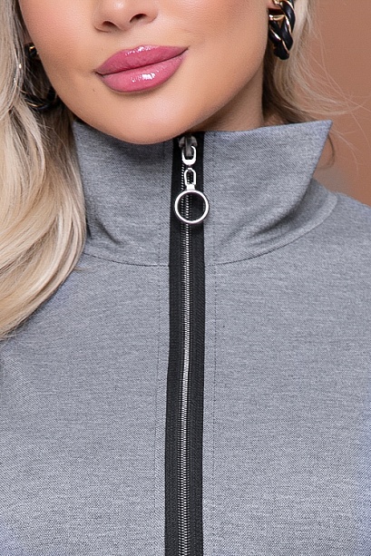 Платье свободного силуэта из трикотажного полотна джерси со спущенным плечом.Горловина стойка с застежкой на молнию.Ремень в комплект не входит.