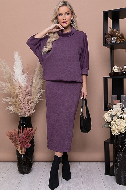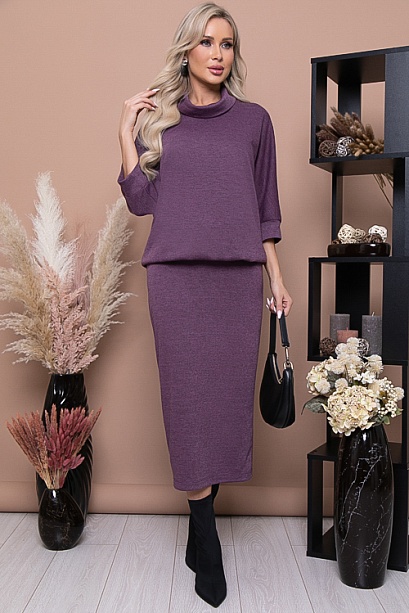 * Платье из мягкого эластичного трикотажного полотна.Лиф платья свободного силуэта,с цельнокроеными рукавами на манжете и воротником "хомут".Юбка прямая,слегка зауженная к низу,по спинке со шлицей.По талии платье зафиксировано на резину.Из верхней части платья формируется глубокий свободный напуск.