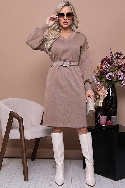 Платье из трикотажного полотна свободного силуэта.Ремень в комплект не входит.