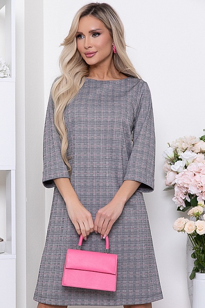 Платье трапецевидного силуэта из жаккардового трикотажного полотна в клетку.