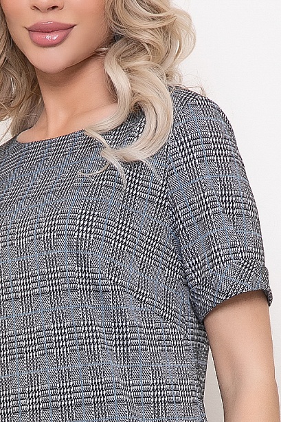 Платье А-образного силуэта из трикотажного полотна в клетку.
