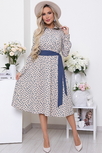 Платье из текстильного полотна,отрезное по линии талии,присобрано на эластичную резину, с летящей расклешенной юбкой и красивым поясом кушак в комплекте.