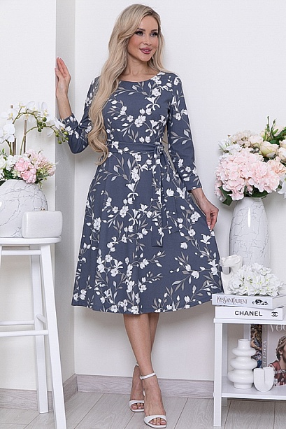 Платье из трикотажного полотна,отрезное по линии талии, с расклешенной юбкой,с удобными карманами в боковых швах.Пояс из основной ткани в комплекте.Ремень в комплект не входит.