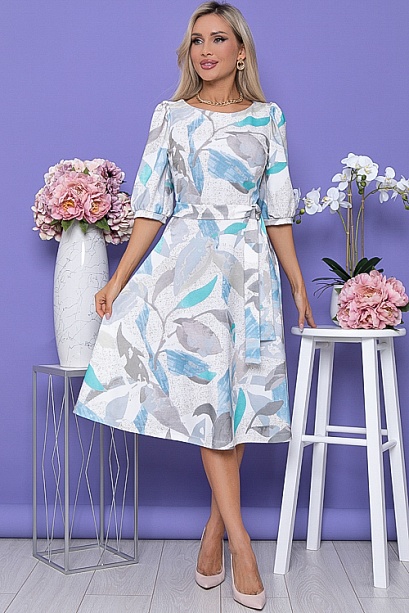 Платье из трикотажного полотна,отрезное по линии талии, с расклешенной юбкой,с удобными карманами в боковых швах.Пояс из основной ткани в комплекте.