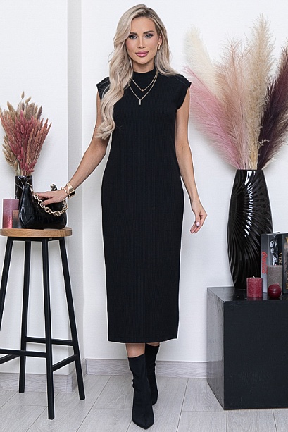 Платье из трикотажного полотна лапша,длиной миди с разрезами по бокам.