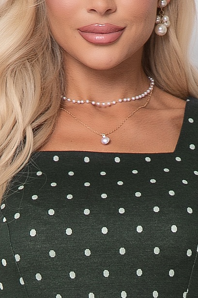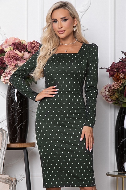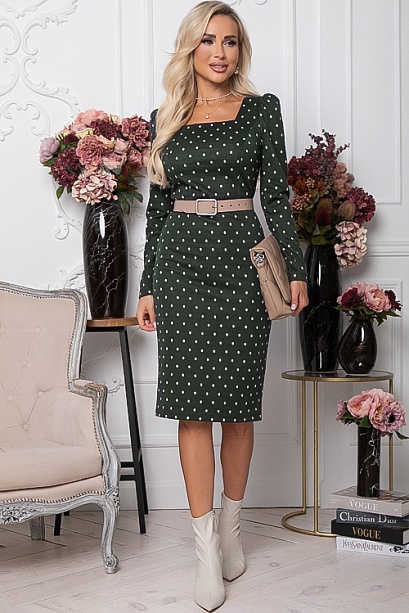 Платье в горох из комфортного трикотажного полотна жаккардового переплетения с вырезом каре.Ремень в комплект не входит.