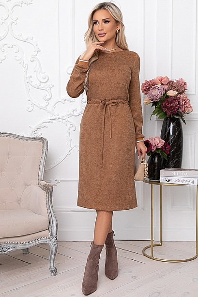 Платье из комфортного  трикотажного полотна   прямого,свободного силуэта с кулиской по талии.Рукав втачной оканчивающийся эластичными подвязами из трикотажной рибаны.В среднем шве спинки шлица.