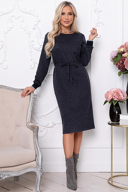 Платье из комфортного  трикотажного полотна   прямого,свободного силуэта с кулиской по талии.Рукав втачной оканчивающийся эластичными подвязами из трикотажной рибаны.В среднем шве спинки шлица.