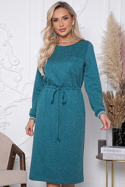 Платье из комфортного  трикотажного полотна   прямого,свободного силуэта с кулиской по талии.Рукав втачной оканчивающийся эластичными подвязами из трикотажной рибаны.В среднем шве спинки шлица.