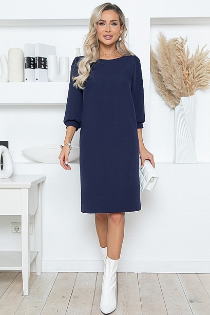 * Платье из костюмной ткани прямого, свободного силуэта. В среднем шве спинки шлица. Рукав втачной, по низу манжет частично собранный на резину.