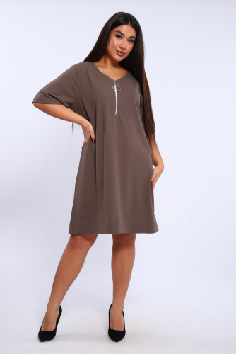 Платье женское полуприлегающего силуэта. Полочка с отложным воротником, двумя накладными карманами.