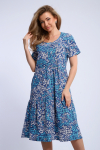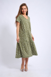 Платье прямое, длинное, с капюшоном, с карманом кенгуру. Рукав короткий, с лампасами из отделочного полотна. Полочка с лампасами из отделочного полотна вдоль боковых швов. В нижней части боковых швов обработаны разрезы.