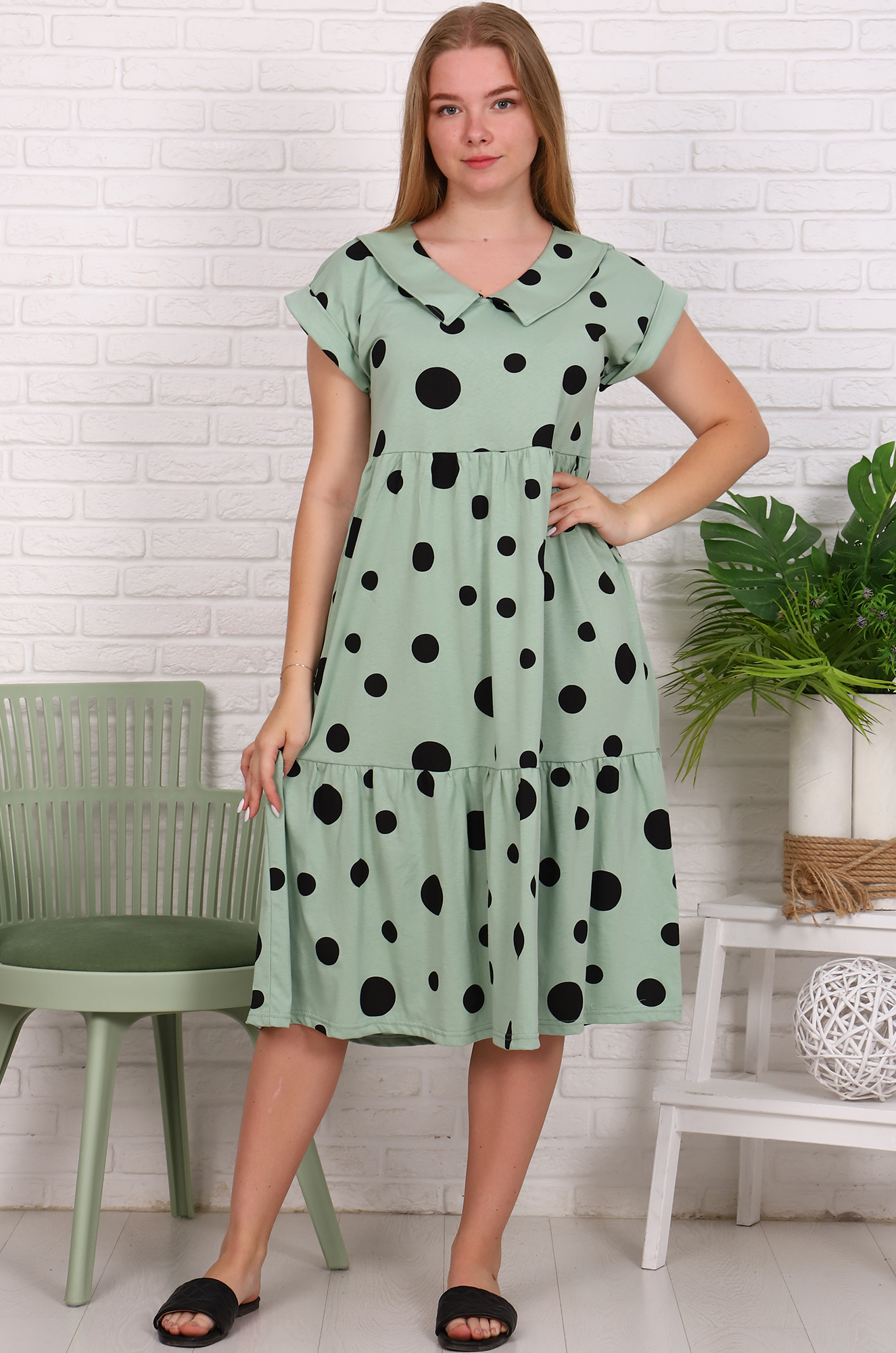 Очень симпатичное женственное платье с воротничком. Модель с отрезной кокеткой и пышной двухъярусной юбкой, рукав цельнокроенный, с подворотом. Идеальный вариант прогулок, романтических встреч и отдыха на море.