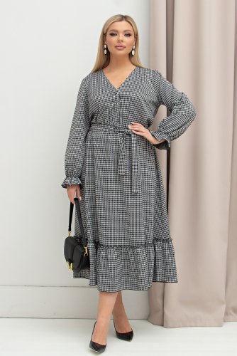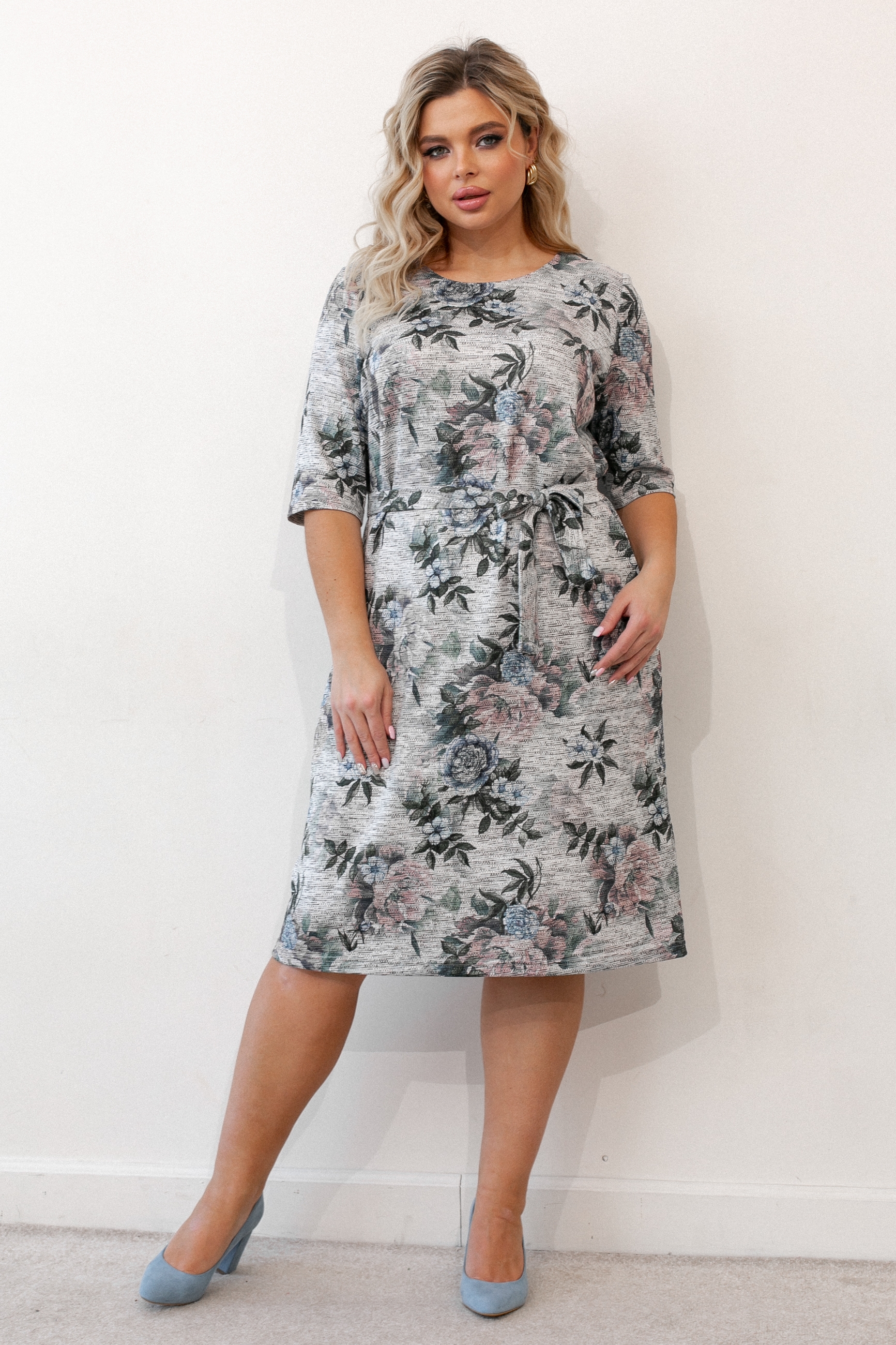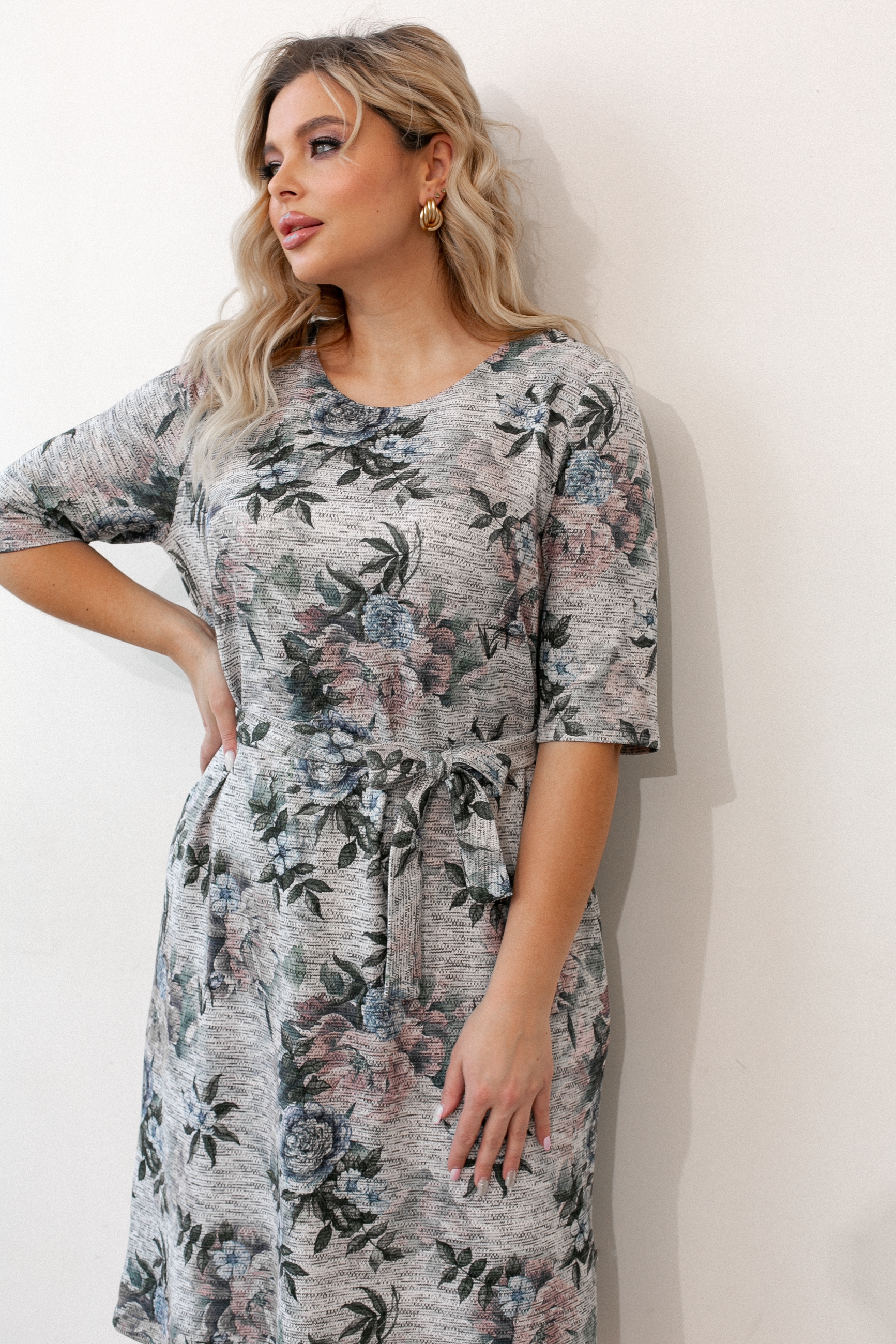 Элегантное платье прямого силуэта выполнено из трикотажного полотна. Округлая горловина на внутренней обтачке. Короткий втачной рукав. Низ ровный, без разрезов. Тканевый пояс из основного материала в комплекте. Модель прекрасно дополнит ваш гардероб.