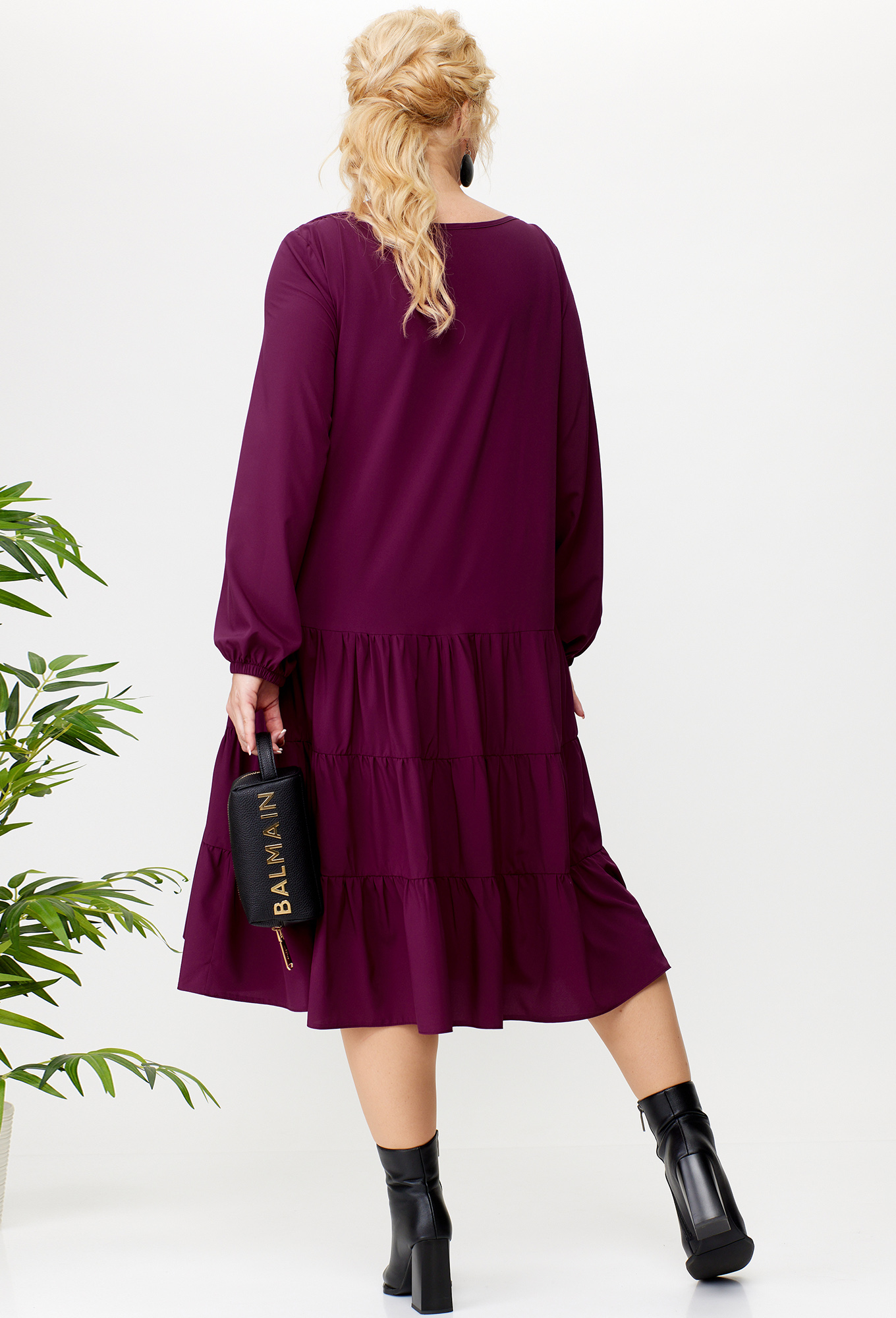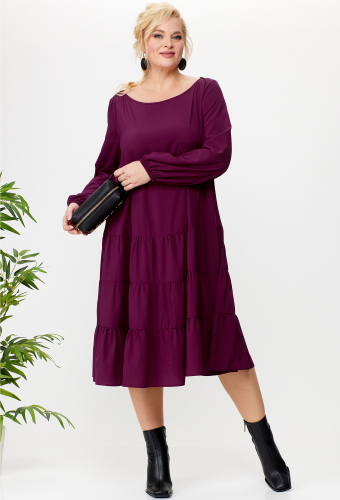 Модель: Анастасия 1024 винный Рос..показатьт: 164 см (рост модели на фото 170см) Сезон: Весна-Лето Тип ткани: Полиэстер 98%, спандекс 2%Платье женское из текстильной ткани. Модель трапециевидной формы с 3-мя воланами, рукав длинный на резинке, вырез в форме лодочки, окантован.