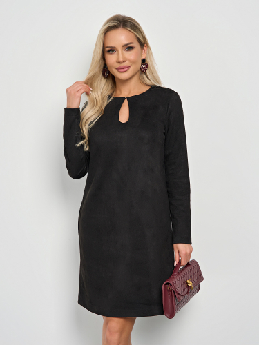 Мягкое трикотажное платье с воротником стойкой прямого кроя.