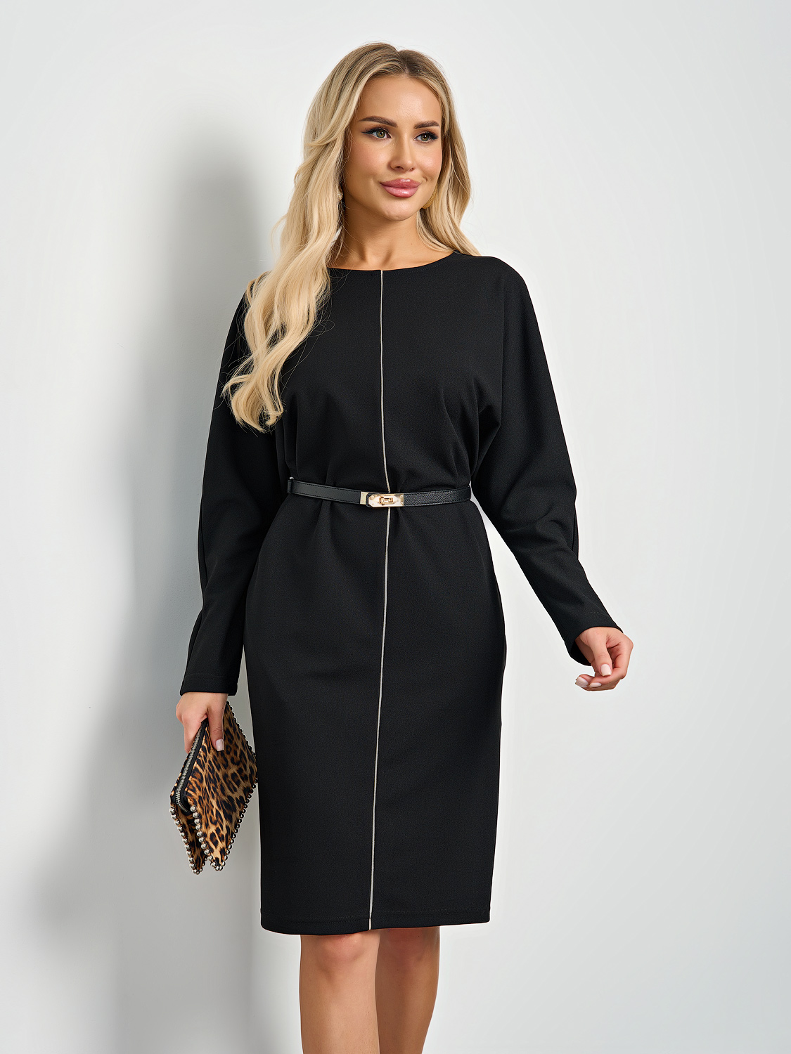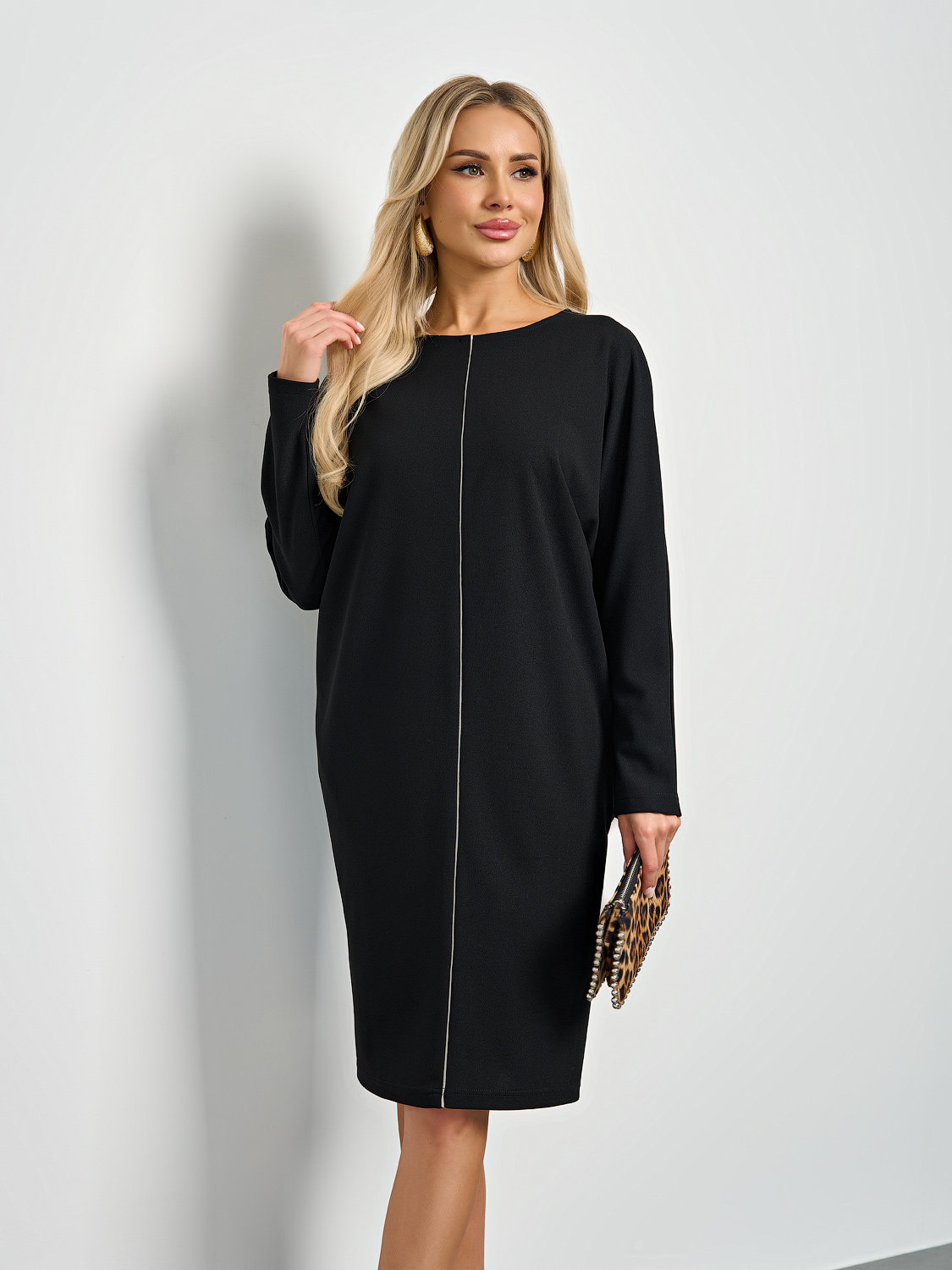 Перед платья украшен вставной декорированной тесьмой по центру.