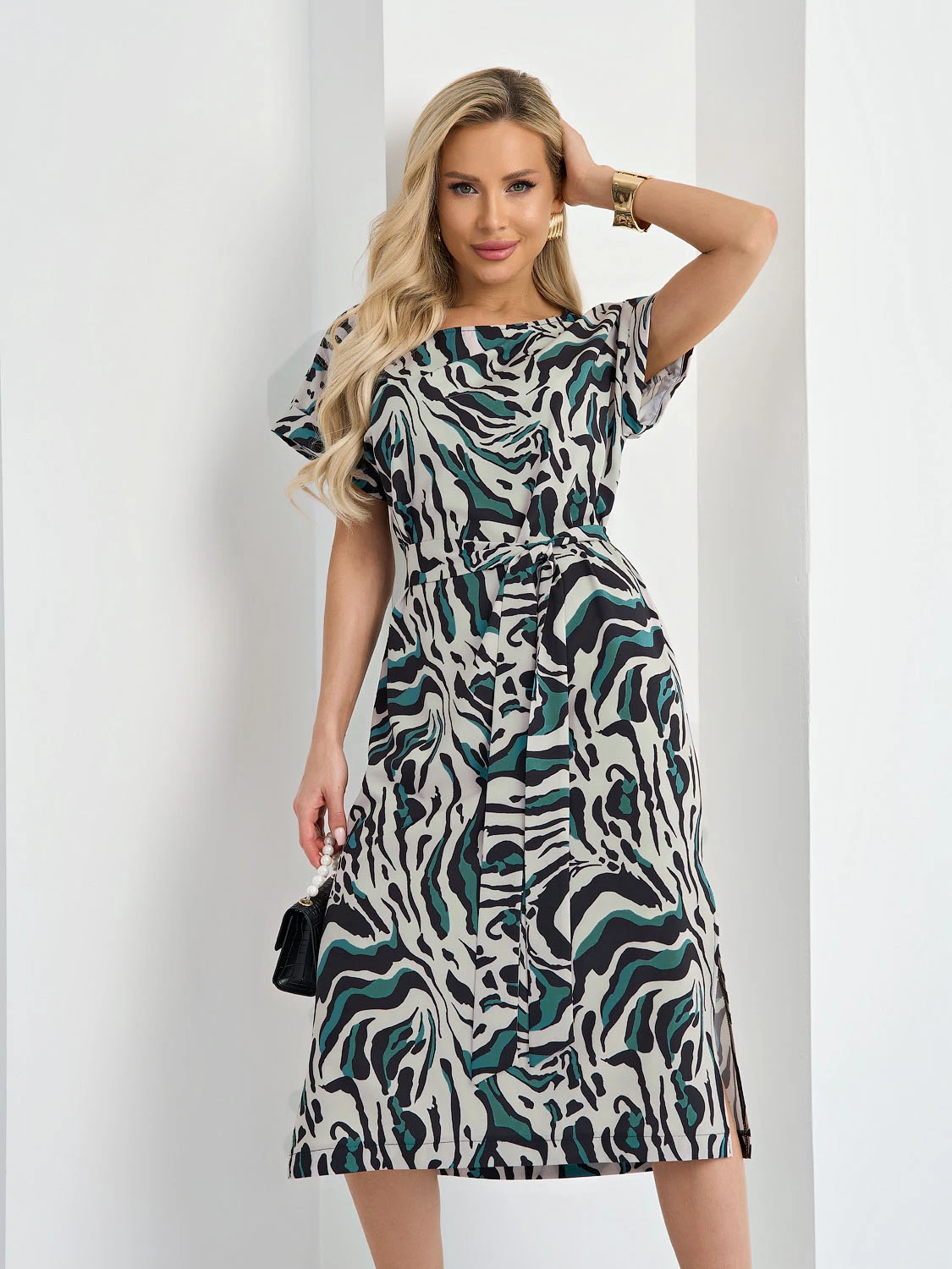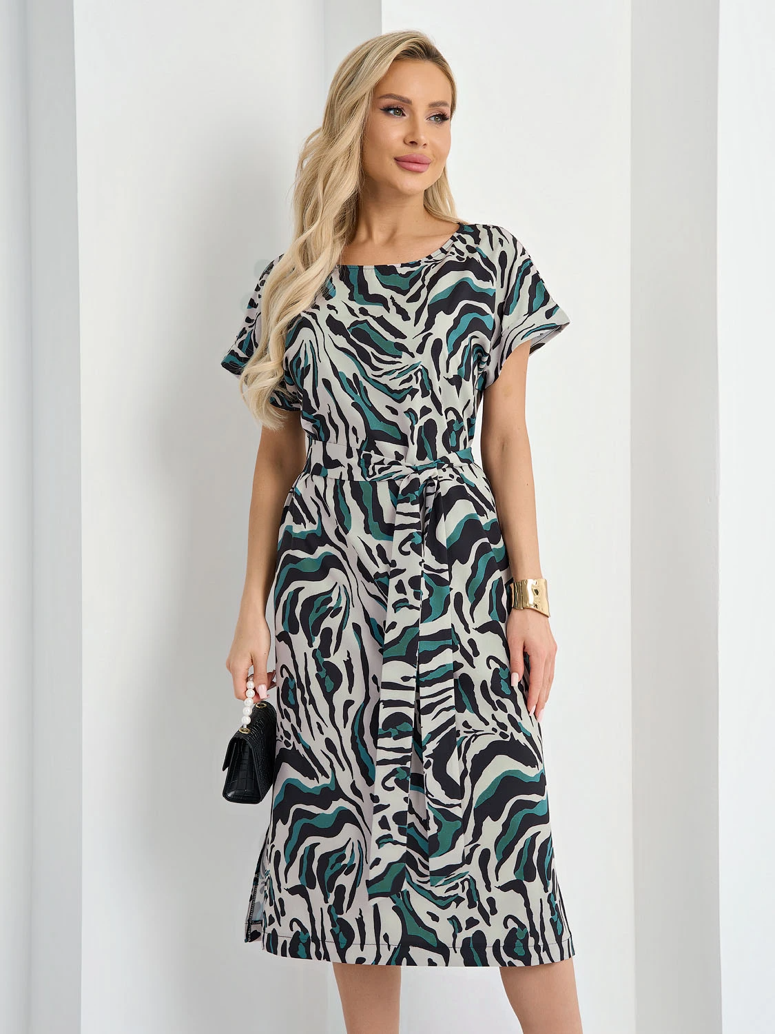 Платье прямого силуэта длины миди.
