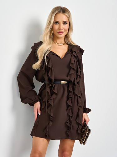 Талия и одна сторона платья декорированы вшивной лентой из искусственной кожи.
