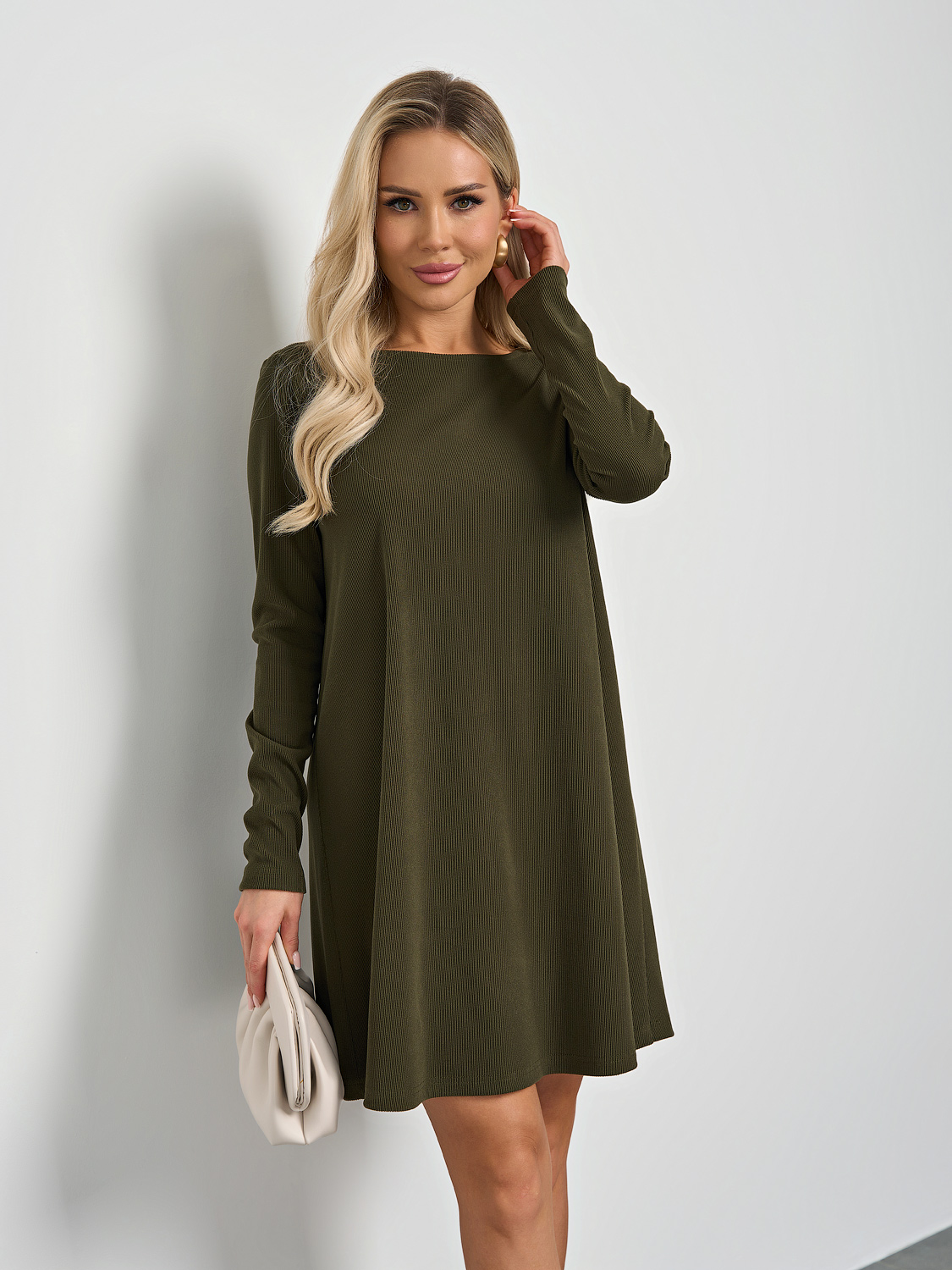 Изделие прилегающее по груди и расклешенное в нижней части.