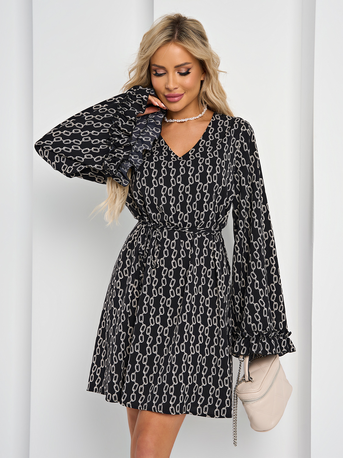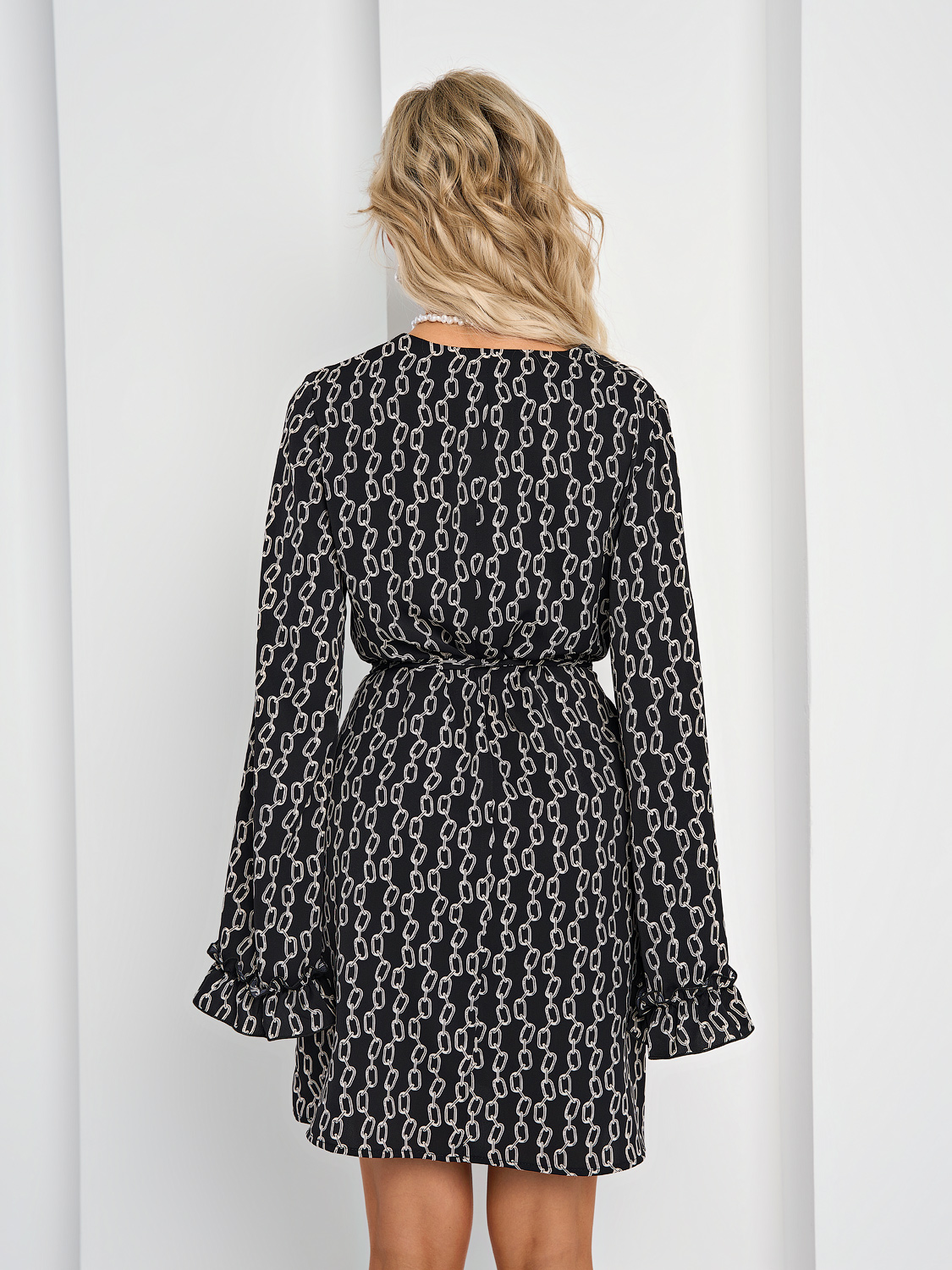 Свободный силуэт с вшитыми длинными завязками в боковые швы, которые позволяют акцентировать талию.