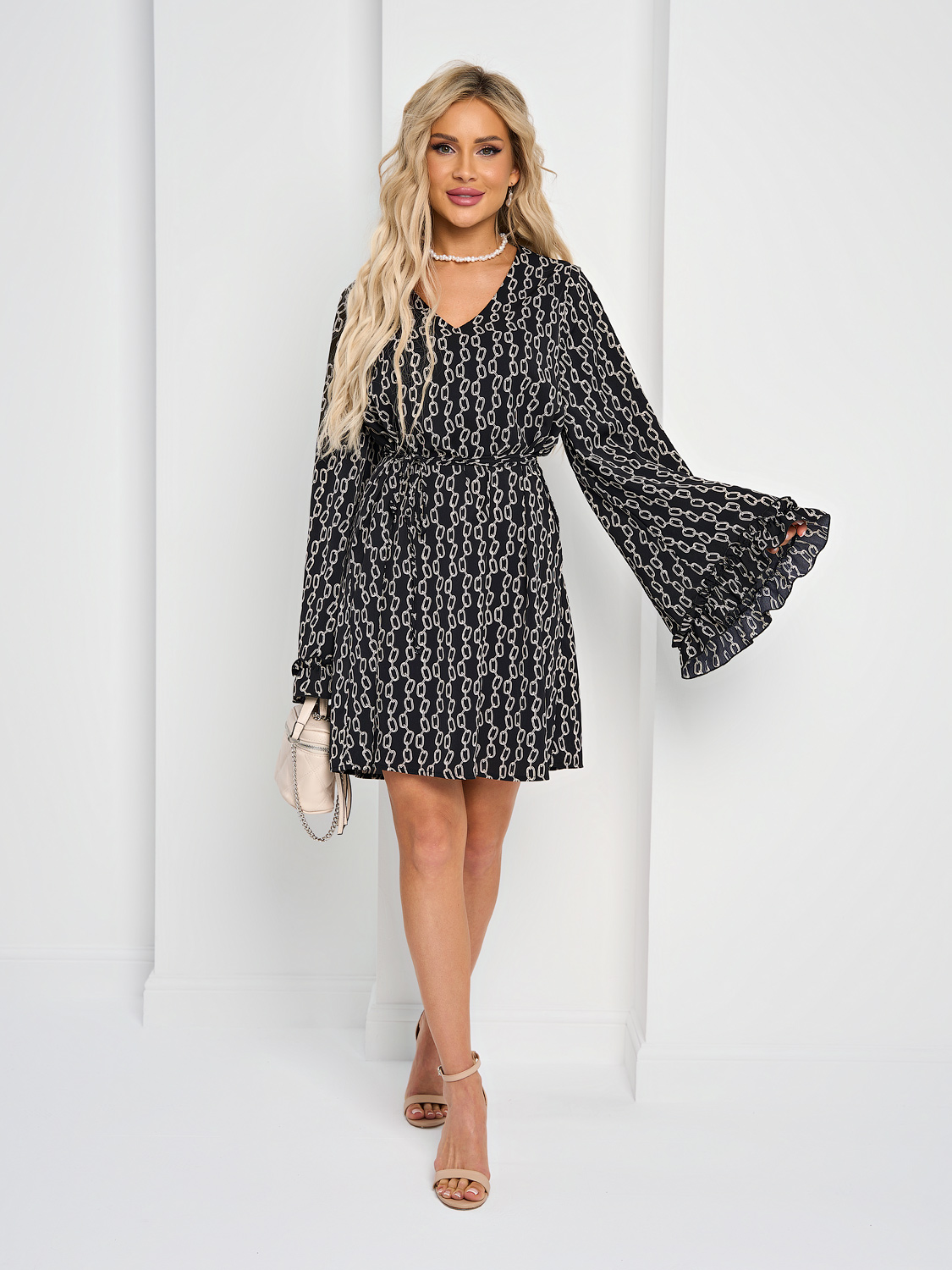 Длинные рукава клеш с воланами на манжетах.