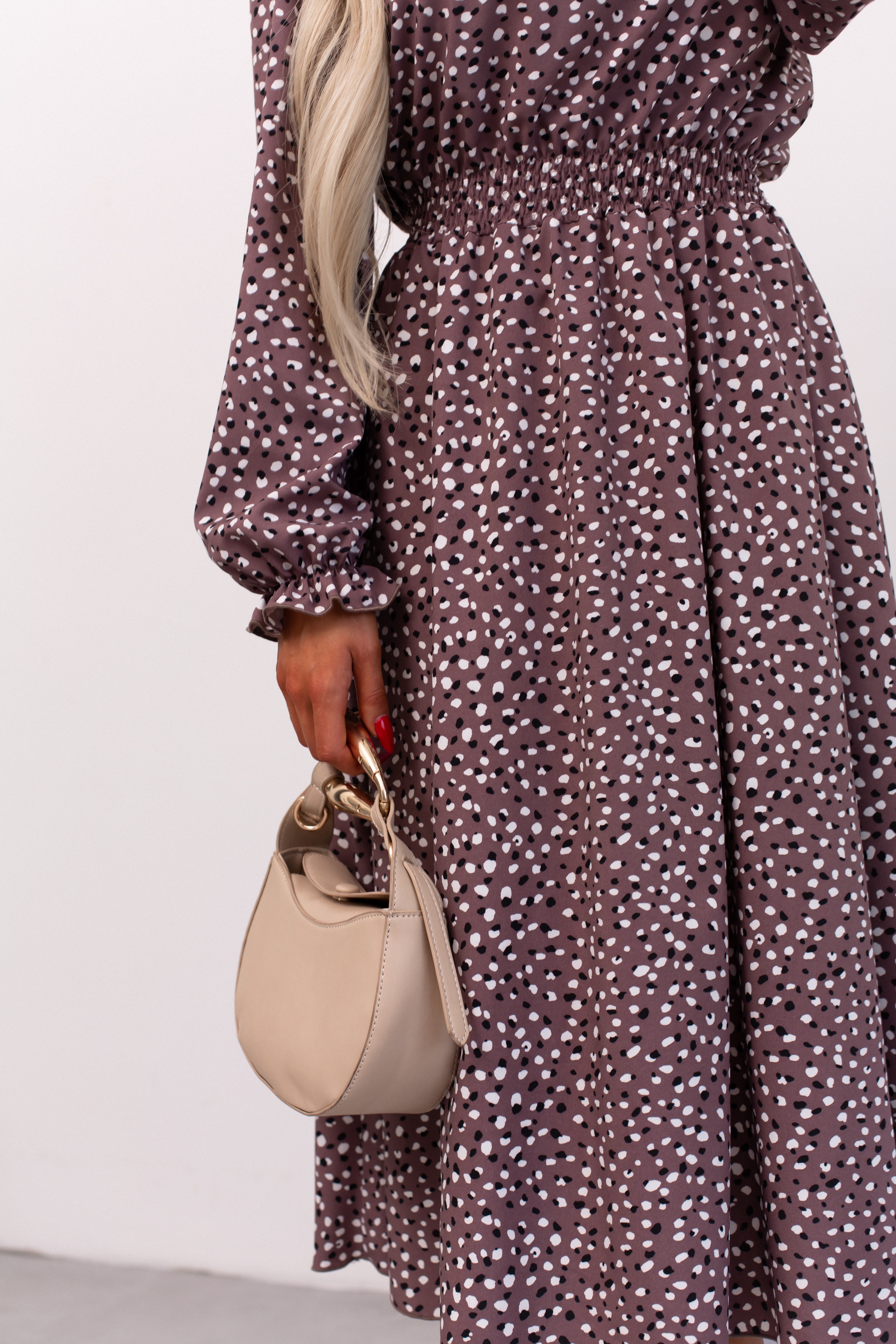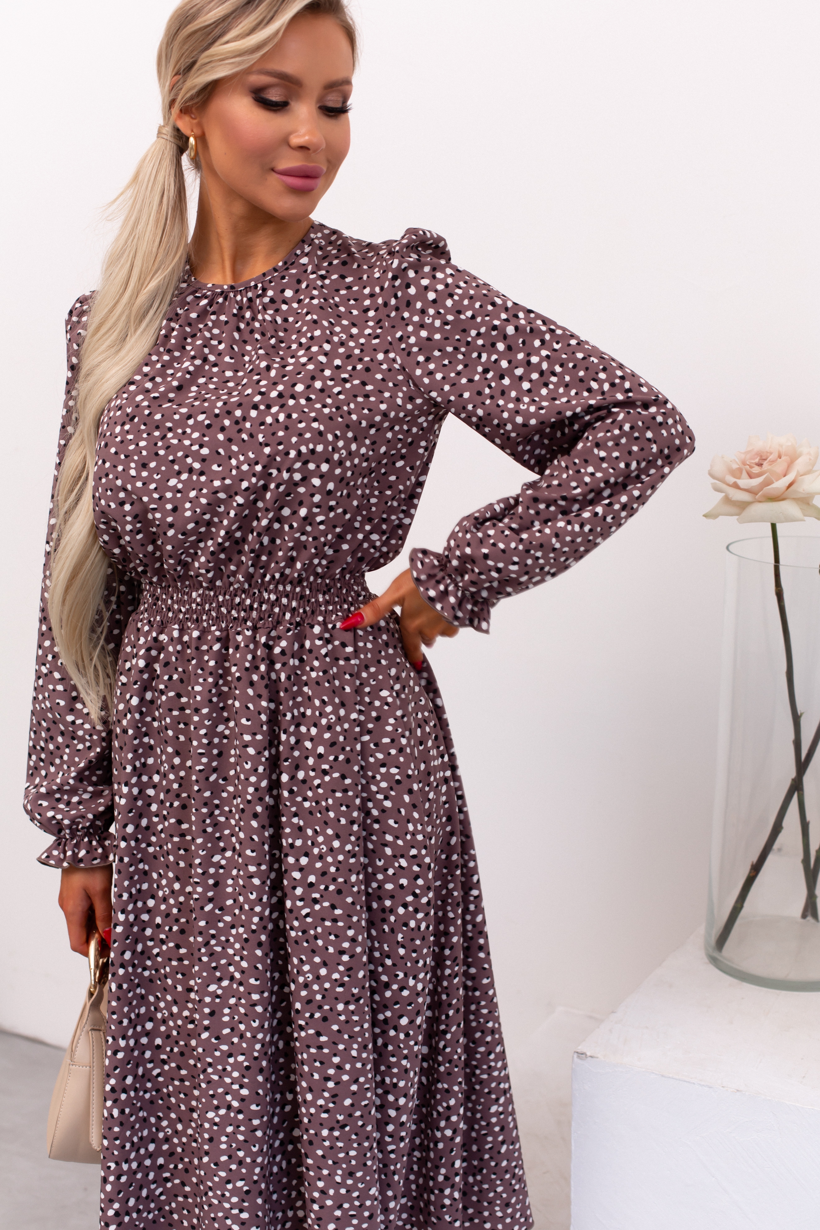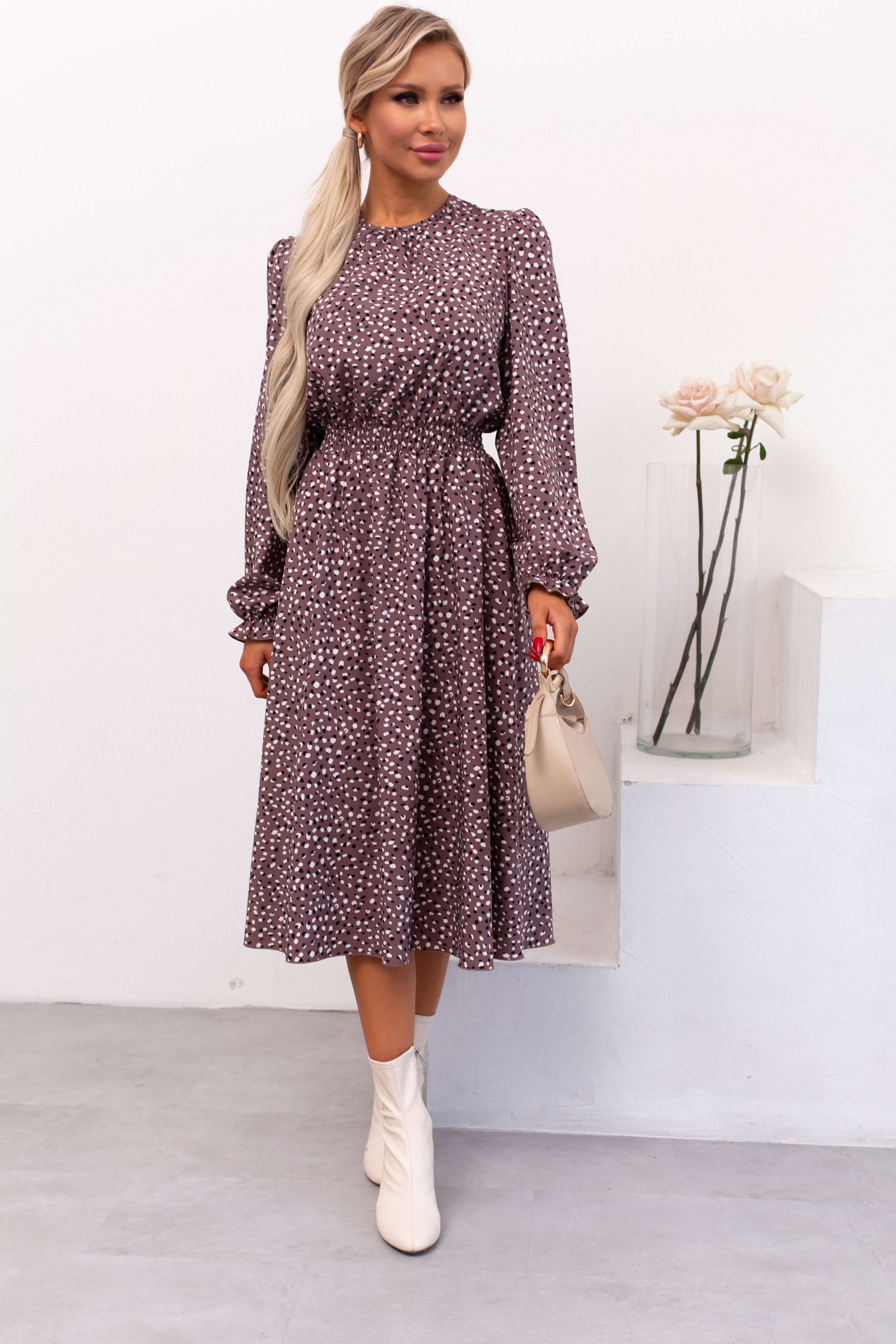 Легкое и воздушное платье из легкой ткани Ниагара. Присборенное по талии на эластичную резинку, создает эффект приталенного силуэта. Округлая горловина, присборена по переду, обработана окантовкой переходящей в завязку по спинке. Длинный втачной рукав присборен на резинку. Низ ровный, без разрезов.