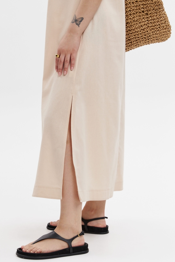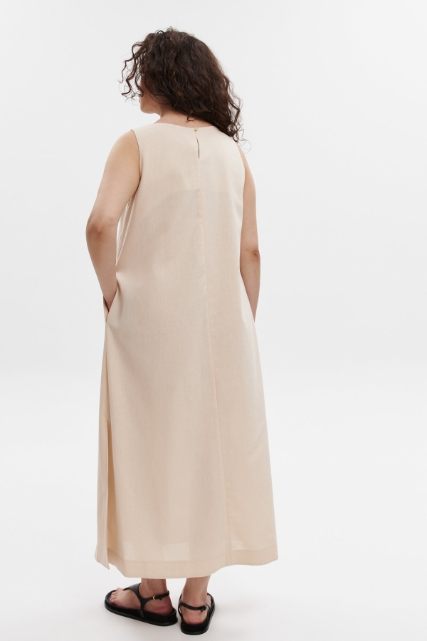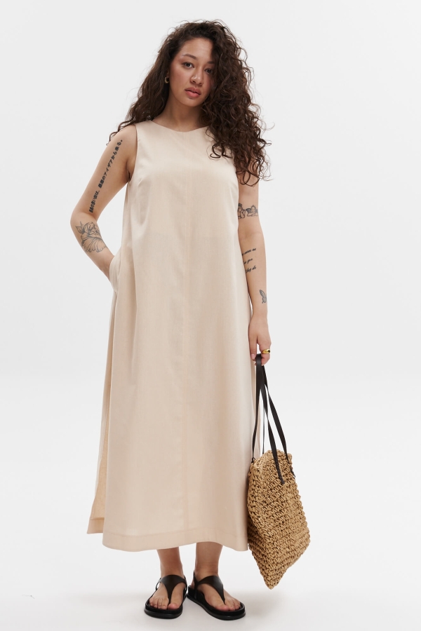Свободное платье А-силуэта с разрезами по бокам, с карманами в боковых швах