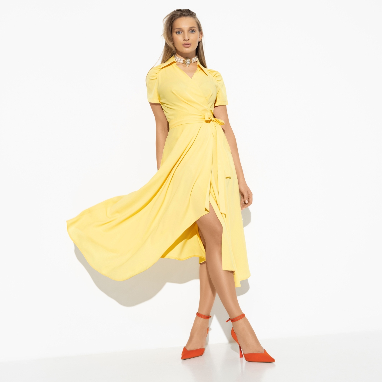 Сливочный пломбир, ванильный леденец или крем-брюле? Для тех, кто отказался от десертов в пользу фигуры, у нас есть конфетка – платье на запах с потайными карманами в нежном лимонном цвете. Ощущать себя красивой – вкусно!