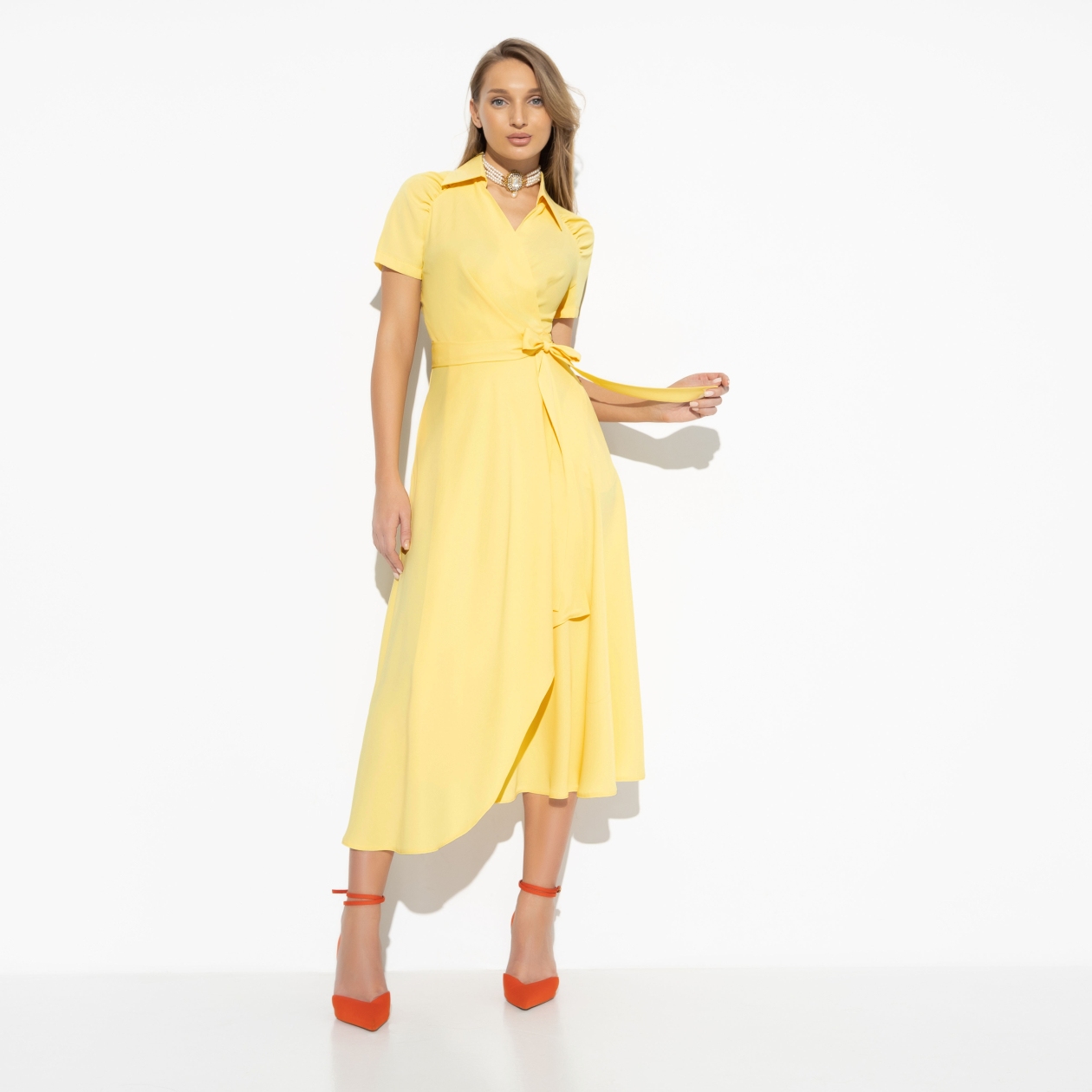 Сливочный пломбир, ванильный леденец или крем-брюле? Для тех, кто отказался от десертов в пользу фигуры, у нас есть конфетка – платье на запах с потайными карманами в нежном лимонном цвете. Ощущать себя красивой – вкусно!
