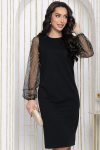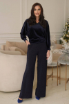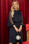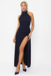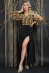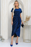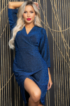 Вечернее платье полуприлегающего силуэта в красивом оттенке с невероятным мерцанием. Акцентом данной модели является разрез по низу изделия, который позволит визуально удлинить ножки. Рукав длинный, втачной. V-образный вырез с имитацией запаха идеально подчеркивает зону декольте.