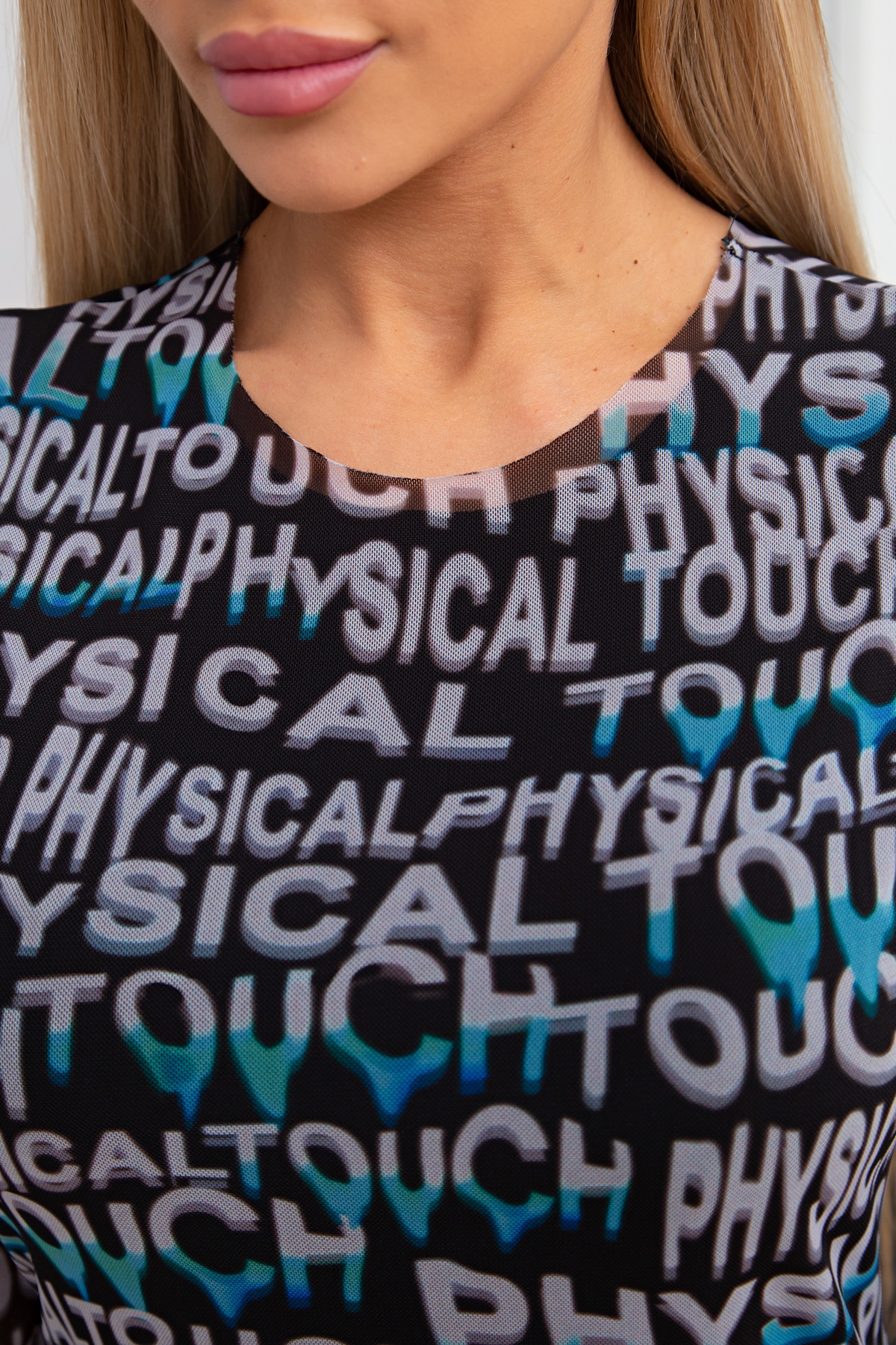 Платье прилегающего силуэта из трикотажной сетки на подкладке из трикотажного полотна. Края не обработаны. Длинный втачной рукав. Округлая горловина.