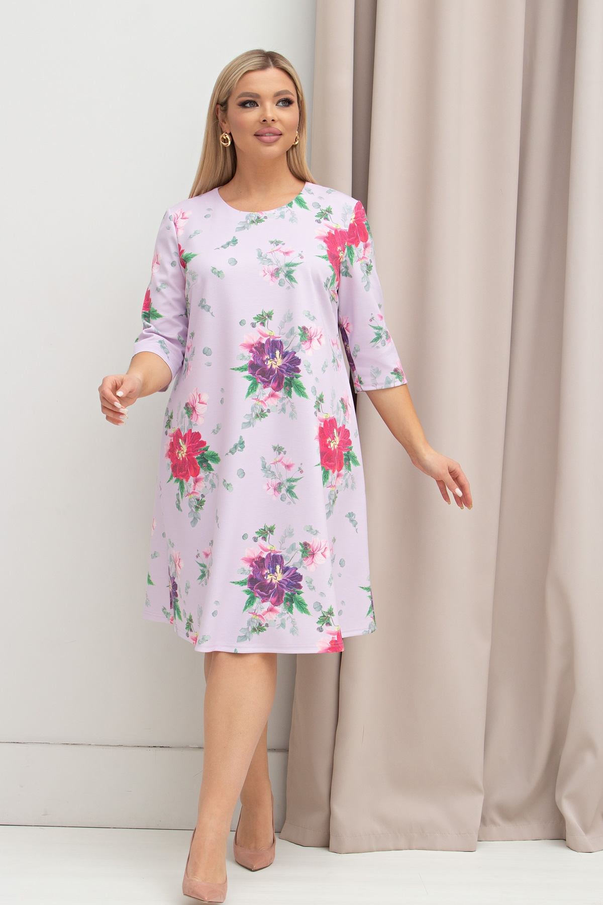 Элегантное платье А-образного силуэта из трикотажного полотна с оригинальным принтом. Втачные рукава ¾. Круглая горловина на внутренней обтачке. В заднем шве спинки – застежка на потайную молнию. Низ ровный, без разрезов.