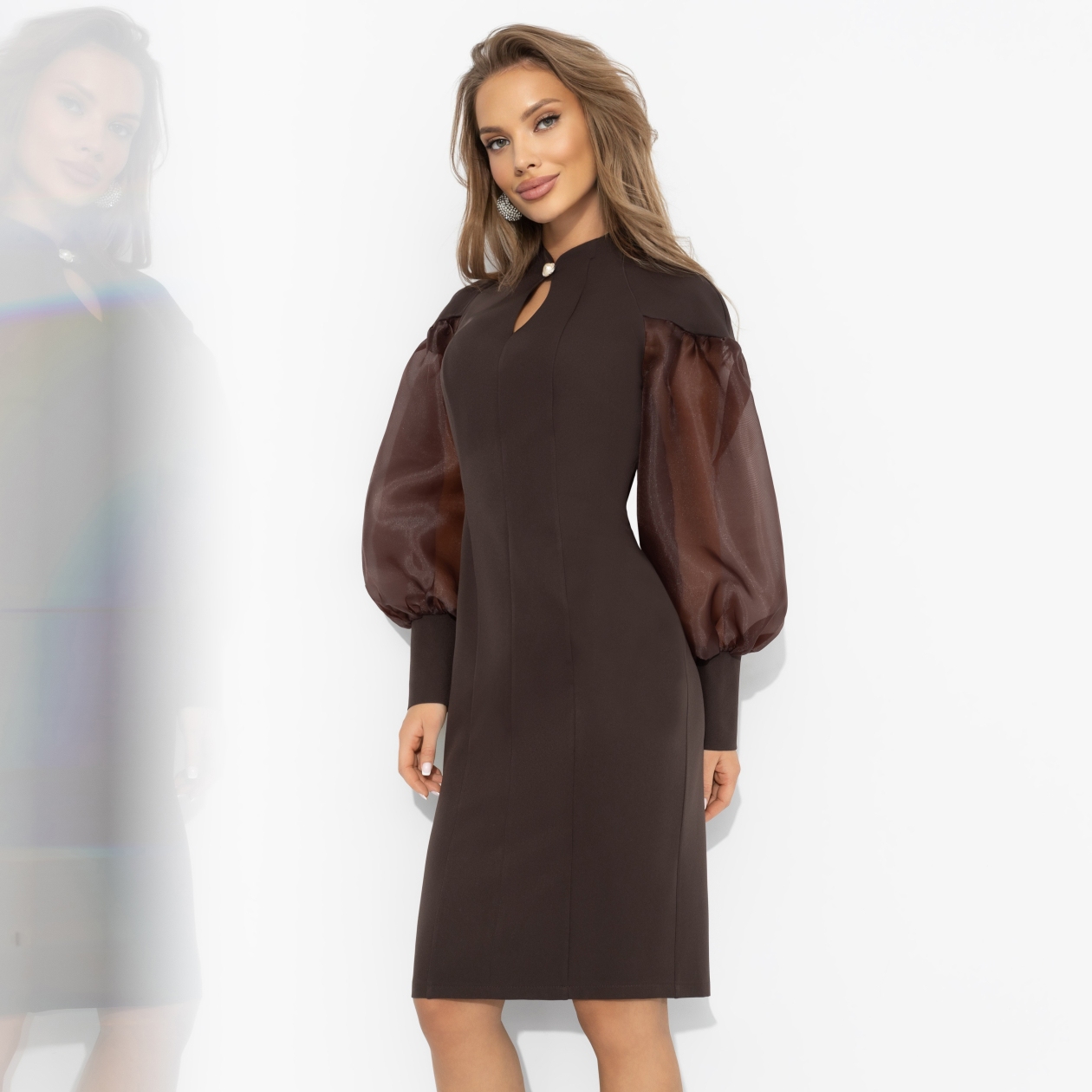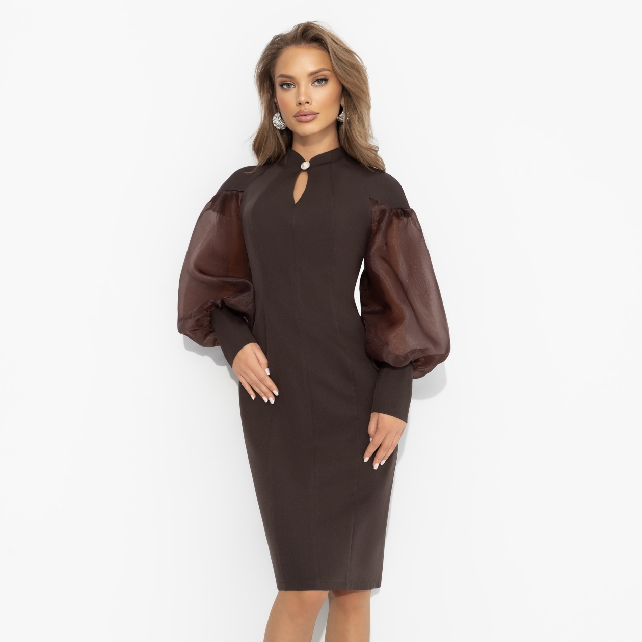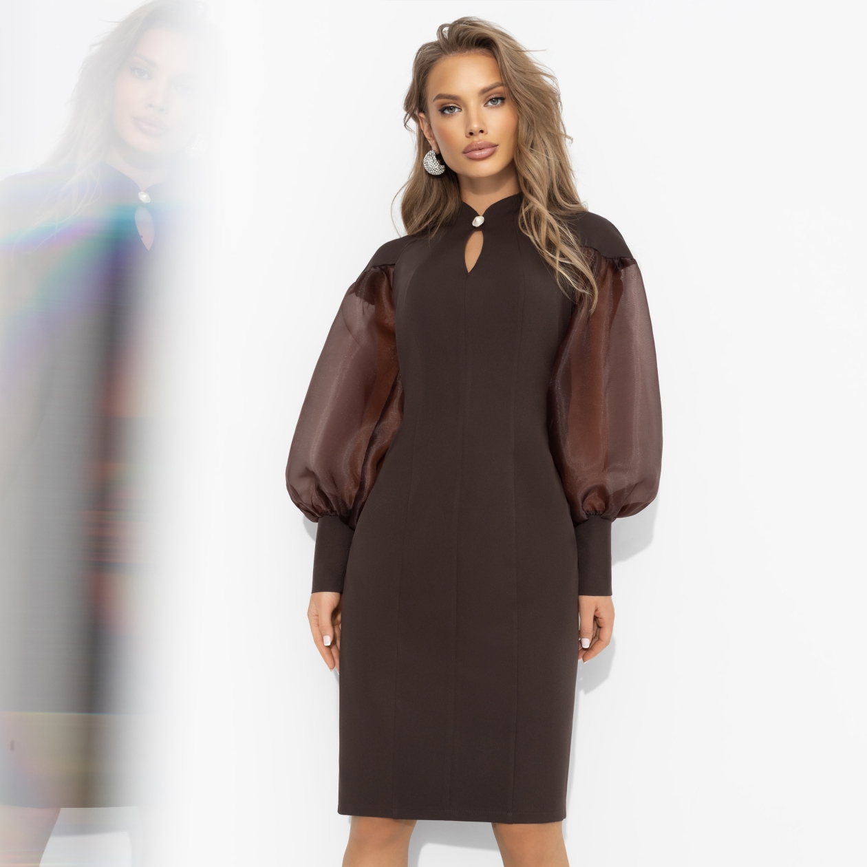 Она любит сладкую жизнь: пару долек молочного шоколада, ароматный капучино и комплименты без повода. В этом платье ЧАРУТТИ все удовольствия будто кристаллизуются вокруг нее ‒ останется просто наслаждаться вниманием и заботой. Платье из костюмной ткани «барби» в благородном шоколадном оттенке держит форму и притягивает взгляды. Прозрачные объемные рукава, элегантная горловина-капелька с элегантной застежкой. Для тех, кому важны детали и вкус к жизни!