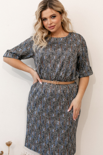 Красивое платье приталенного силуэта. Округлая горловина на внутренней обтачке, по спинке разрез - капелька с застежкой на петлю и пуговицу. Втачной рукав 3/4, оканчивается притачной манжетой. Модель отрезная по линии талии. По талии проложена эластичная резинка, что дополнительно подчеркнет Ваш силуэт. Пояс - кушак из основного материала в комплекте.
