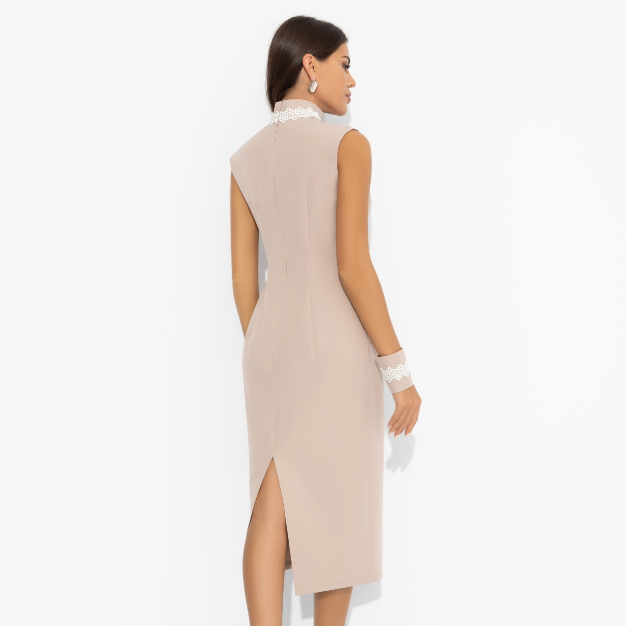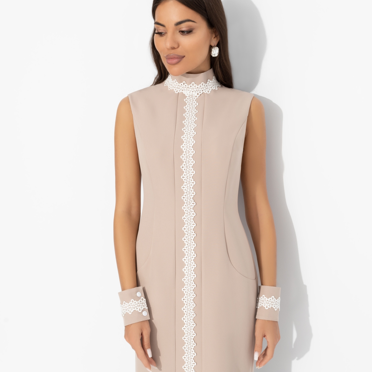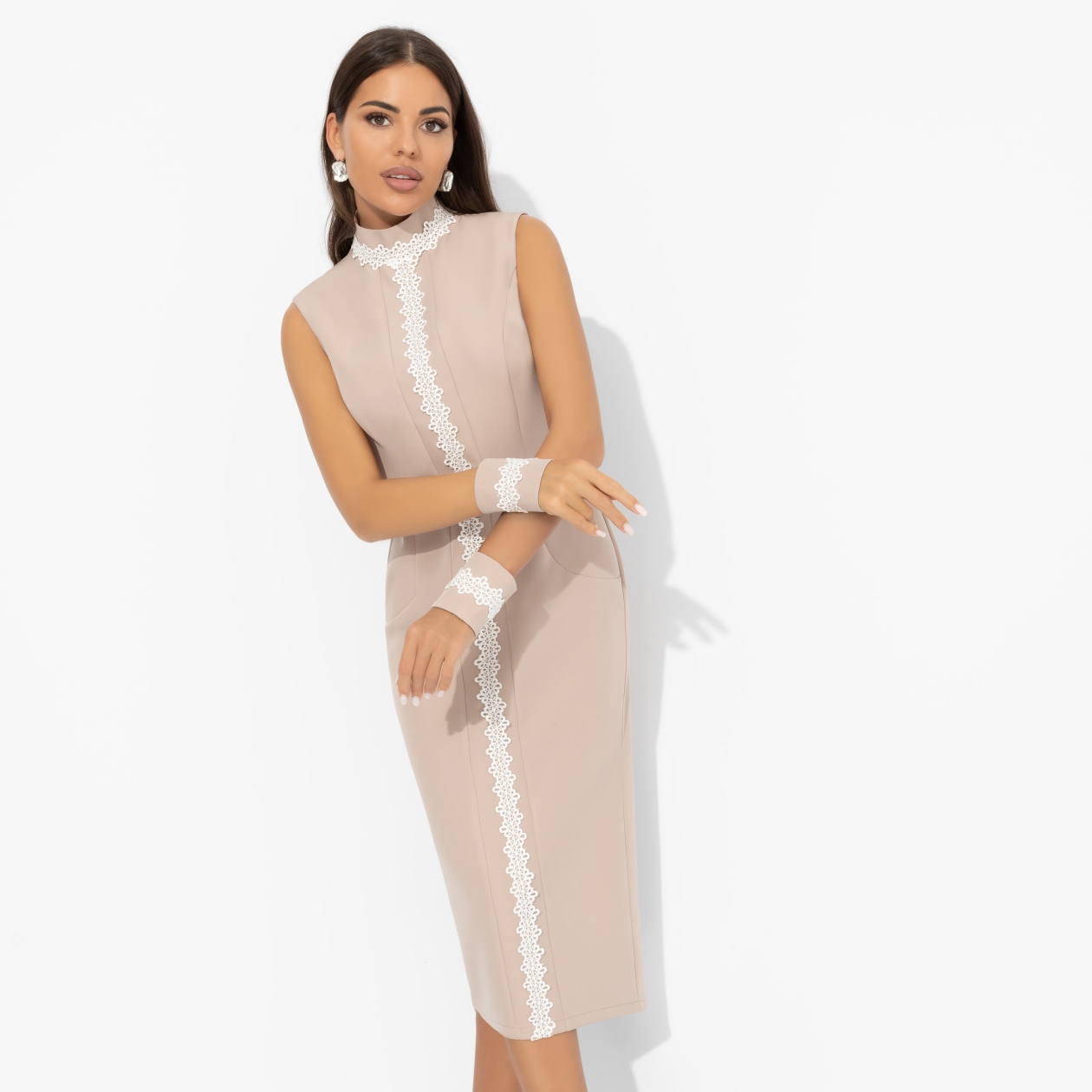 Платье-футляр комбинированное с кружевом, Поцелуй удачи (biege, с манжетами)