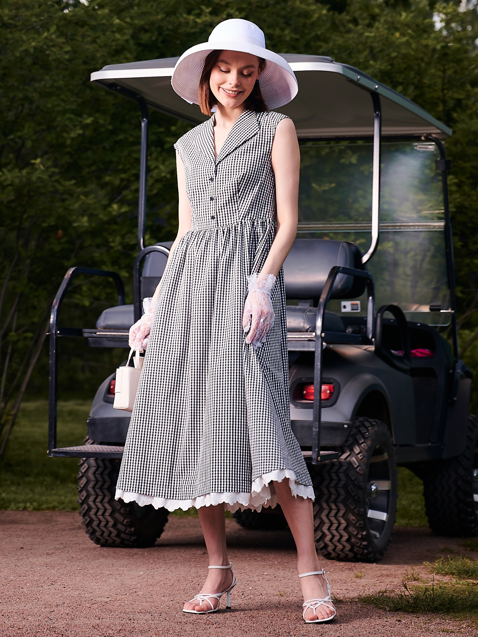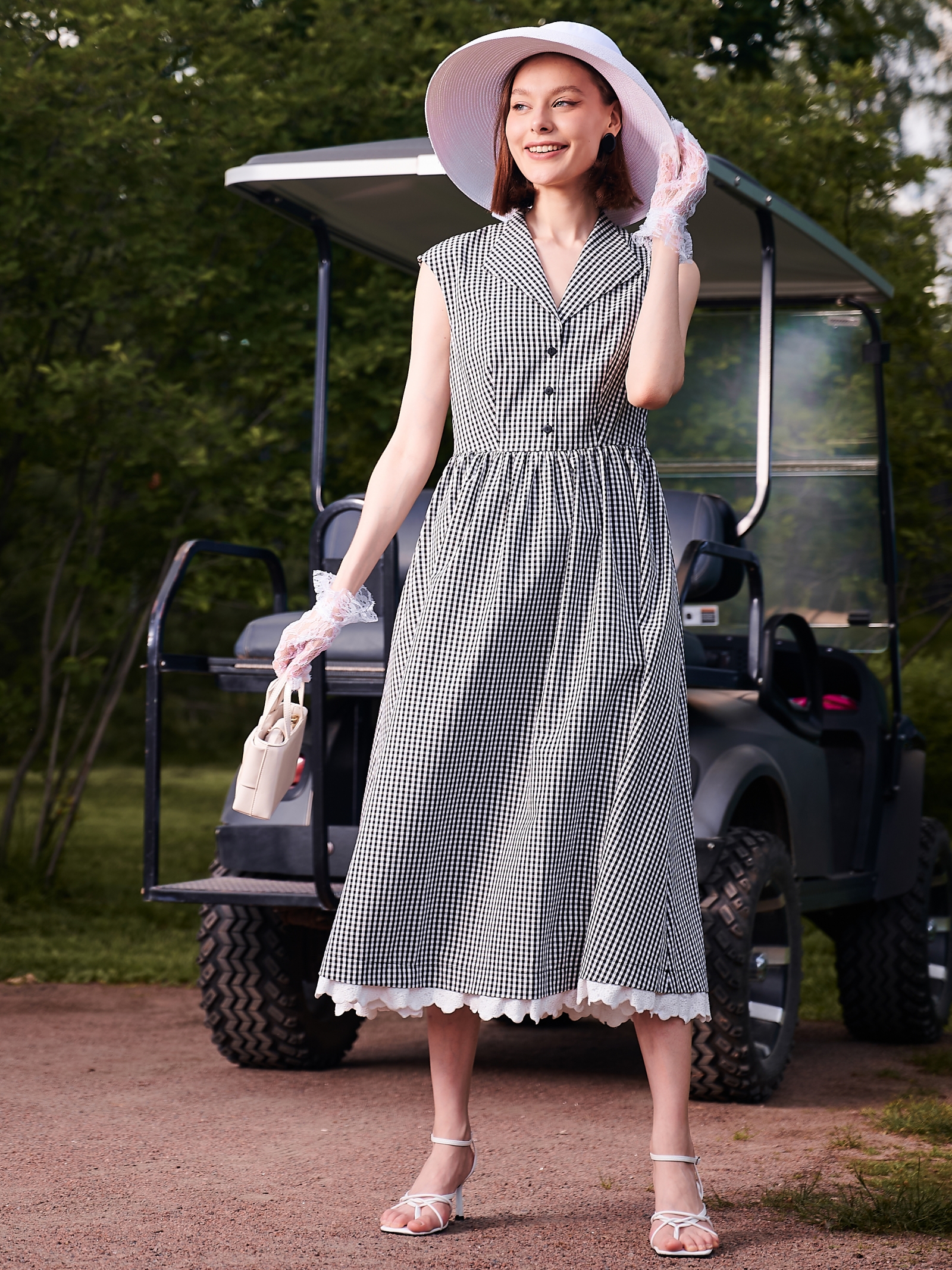 Платье хлопок 60-е OD-721-6 клетка черно-белая