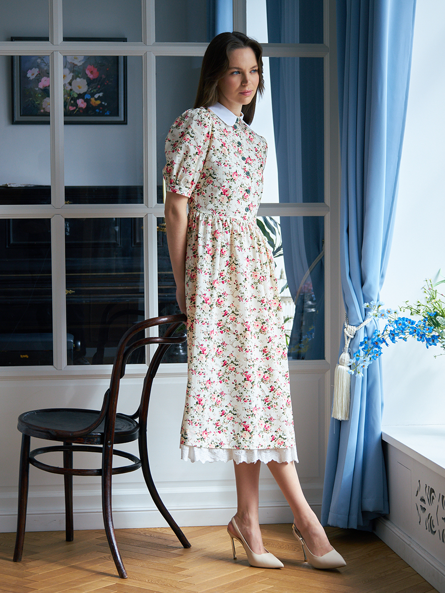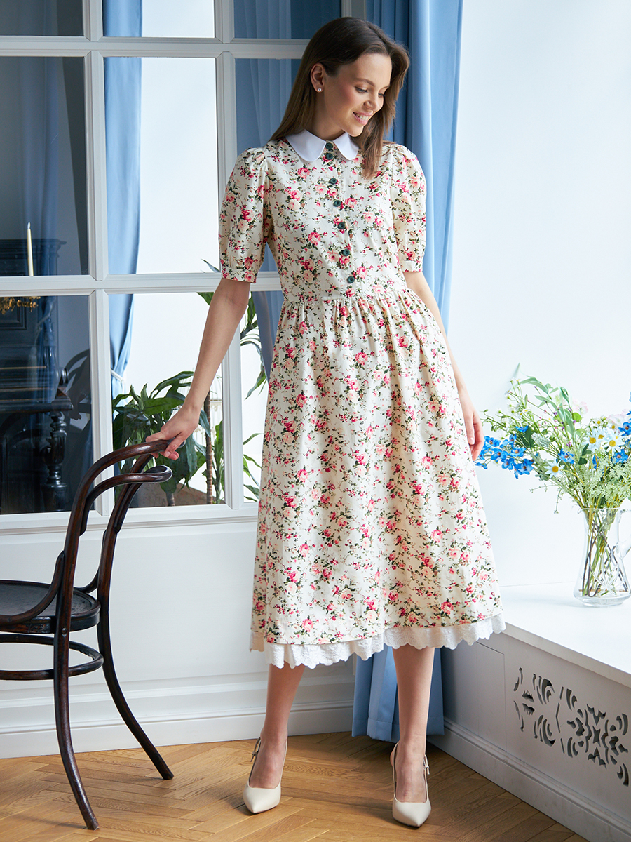 Платье хлопок OD-790-6 молочный мелкий цветок