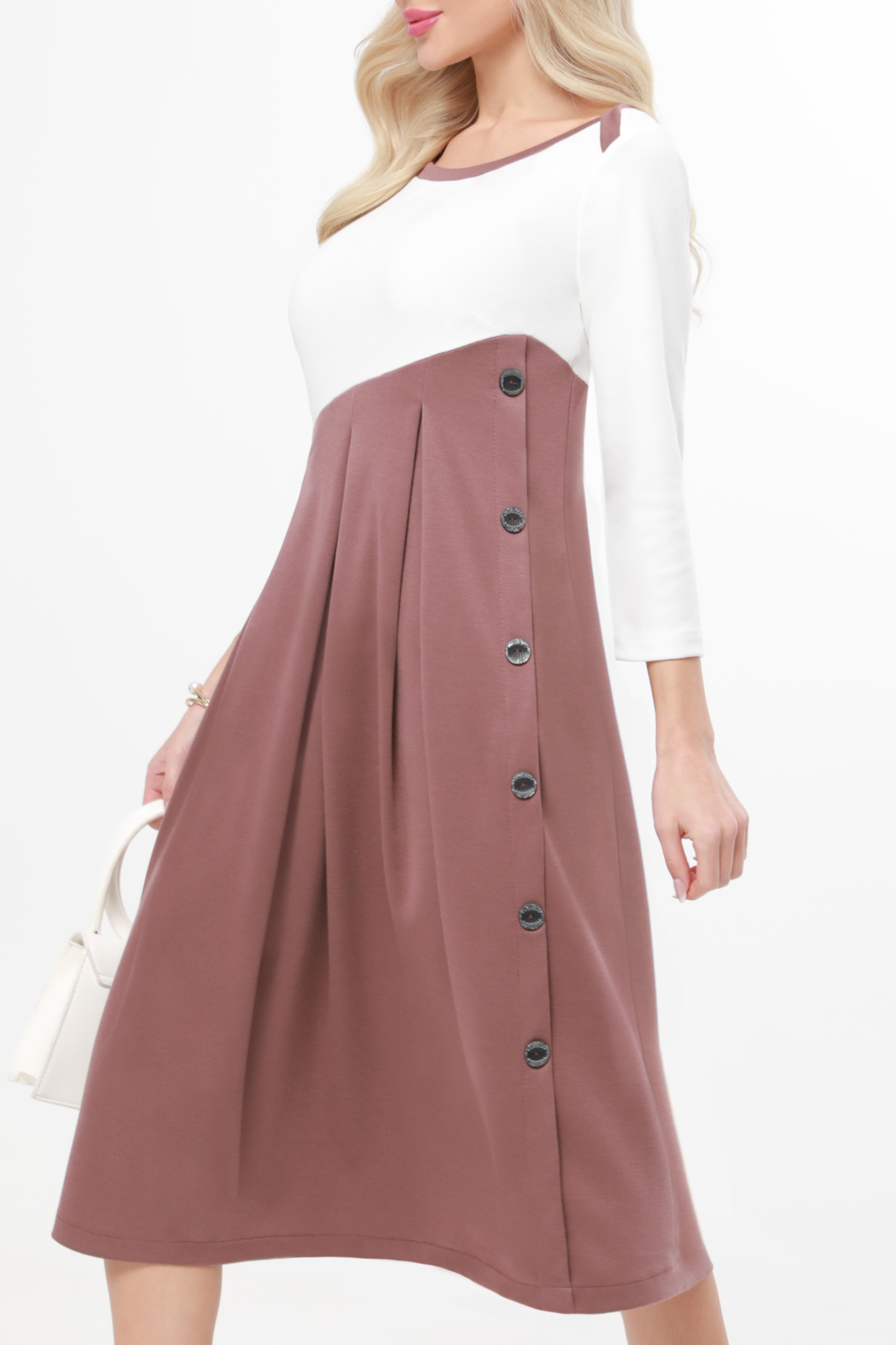 Платье А-силуэта с пуговицами — универсальная модель, которая добавит разнообразия не только в повседневный, но и в деловой или вечерний гардероб. Полуприлегающий фасон с мягкими складками помогает скрыть недостатки фигуры, смотрится женственно и создает эффект летящей походки. Стильная деталь платья — вертикальный ряд декоративных пуговиц, который зрительно вытягивает силуэт и стройнит. Рукава длиной ¾ приоткрывают изящные запястья и добавляют образу легкости. За счет продуманного фасона платье будет роскошно смотреться как на женщинах стандартной комплекции, так и на полных красотках. Модель выполнена из приятного на ощупь трикотажа, который не просвечивает и слегка тянется. Рекомендуется стирать платье в деликатном режиме без отжима при температуре не более 30 градусов.