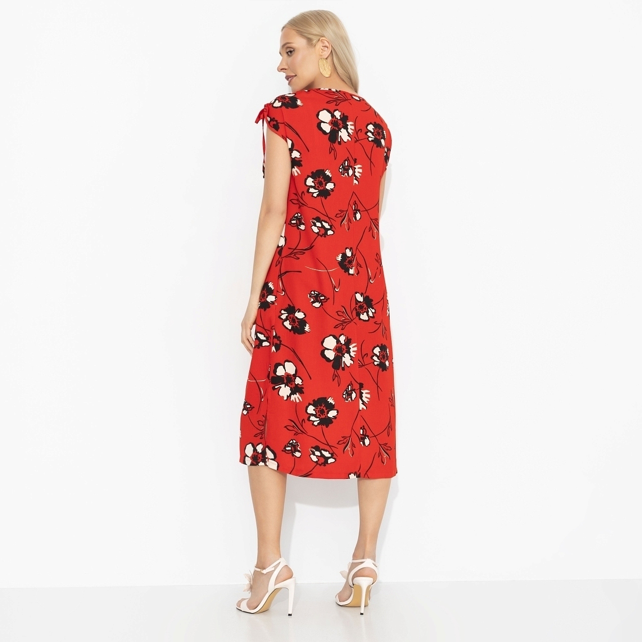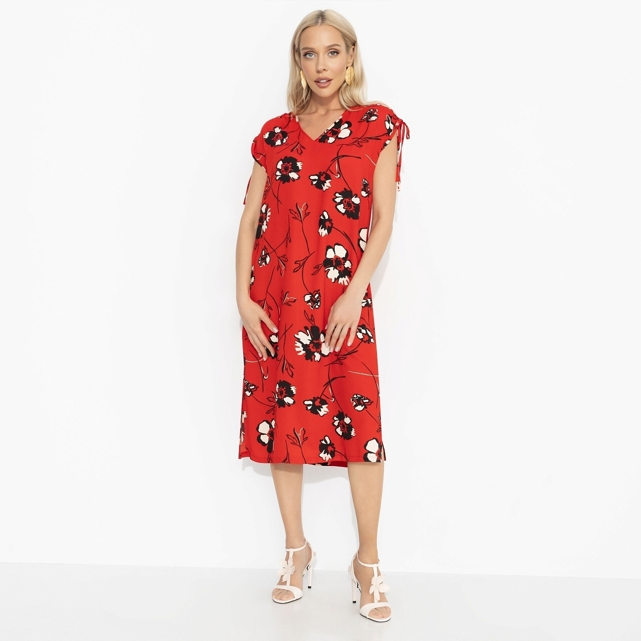 Если бы Миранда Пристли однажды решила позволить себе немного беззботности и эмоций – это было бы это платье. Красный с чёрным принтом – дерзкий, живой, почти провокационный. Оно не спрашивает, можно ли – оно просто есть. Принт двигается, привлекает внимание, а свободный крой даёт уверенность: тебе комфортно быть в центре. Надень с минималистичной обувью и убери всё лишнее – пусть работает только оно.