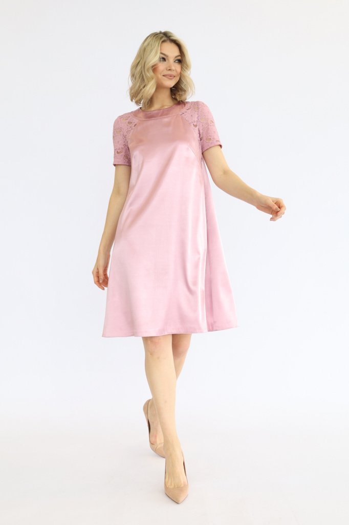 Платье А-силуэта с круглой горловиной  застежкой на пуговицы и рукавами из кружева.