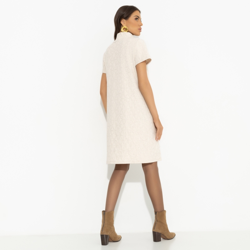 Платье из плотного трикотажа «Словно впервые» — это воплощение элегантности и комфорта, которое станет идеальным выбором для тех, кто стремится подчеркнуть свою яркую индивидуальность даже в прохладные дни. Материал, из которого выполнено платье — трикотаж «жаккард», отличается особой фактурностью и изысканностью. Это платье женское идеально подходит для тех, кто ценит стиль и удобство одновременно. Воротник-стойка добавляет образу нотку утонченности. Платье прямого силуэта длиной до колена подчеркивает силуэт, создавая эффект стройности. Оптом приобретая такие платья женские, вы сможете предложить своим клиентам нечто особенное — сочетание классики и современности в одном изделии.