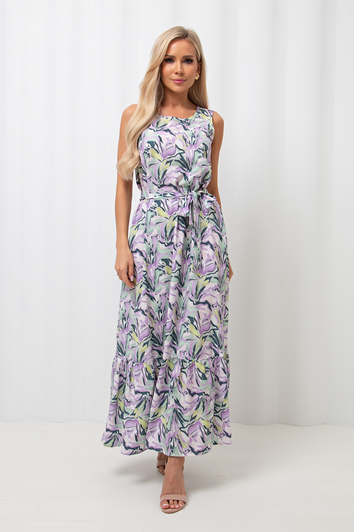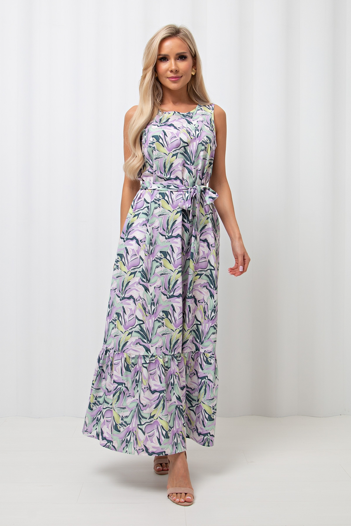 Легкое летнее платье А - силуэта, выполнено из легкой ткани Ниагара. Округлая горловина, по спинке застежка на петлю и пуговицу. В боковых швах функциональные карманы. Низ оформлен притачным воланом. Пояс из основного материала в комплекте.