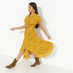 Платье ЧАРУТТИ было её доспехами – чёрная основа, строгая и серьёзная, и дикий леопардовый принт на рукавах, как символ побед. В платье она шла на переговоры, зная, что чёрный цвет внушает уважение, а животный принт предупреждает: с ней шутки плохи. Это история ЧАРУТТИ о том, как роскошь и воля создают уникальный образ. Платье трапециевидного силуэта в длине до колена. Рукава акцентного материала с трендовым принтом. Платье хорошо смотрится на любом типе фигуры. Воротник-стойка сзади оформлен бантом.