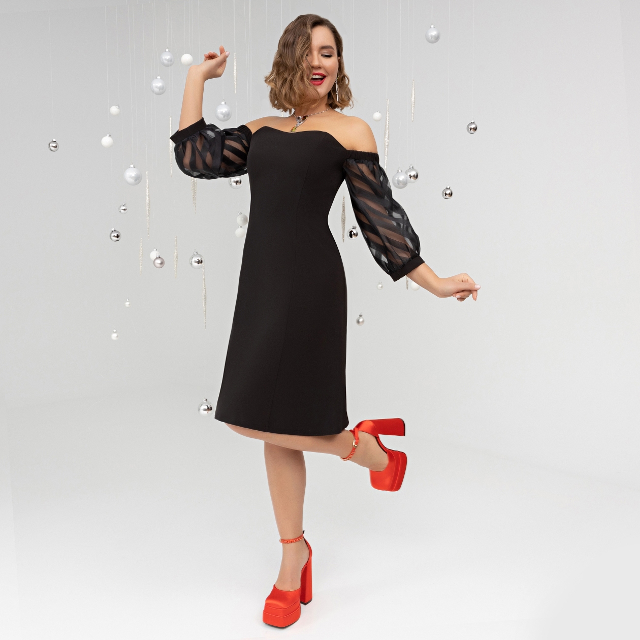 Wow эффект обеспечен. Трендовые рукова, одновременно прозрачные и с трендовой полоской. Обнаженные плечи и акцент на талию. Ты богиня. С новинкой от CHARUTTI праздник пройдет великолепно!